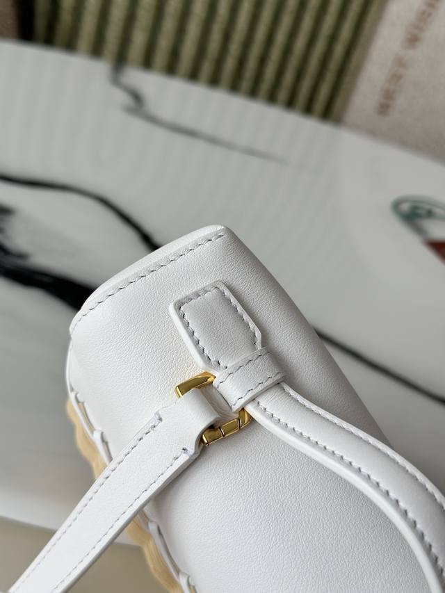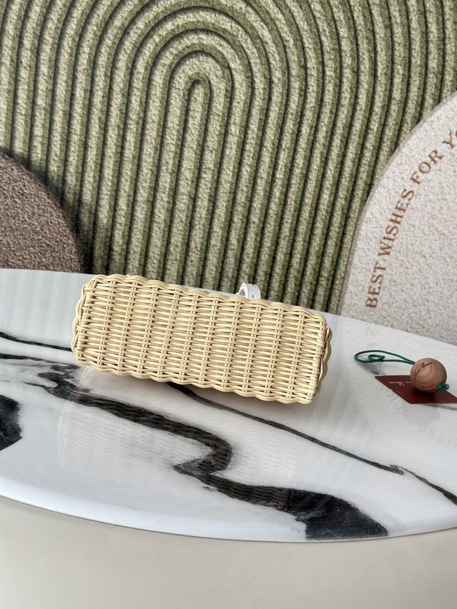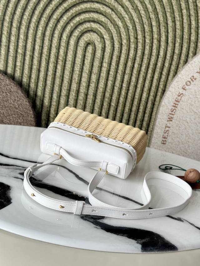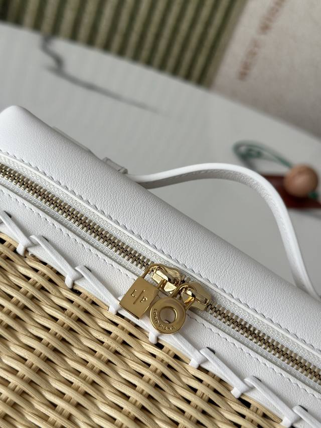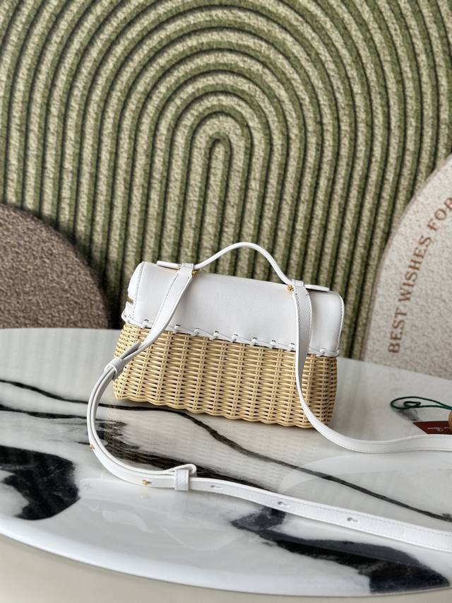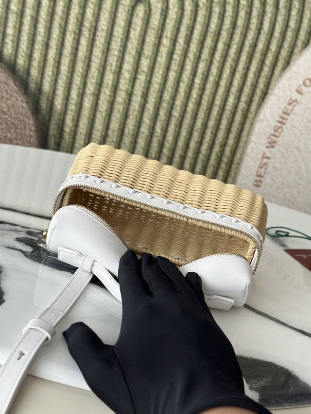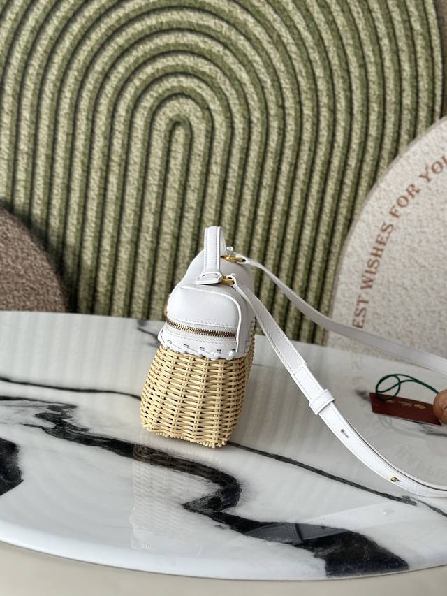 L19 Bamboo and Rattan White Extrapocket. This compact handbag combines handwoven