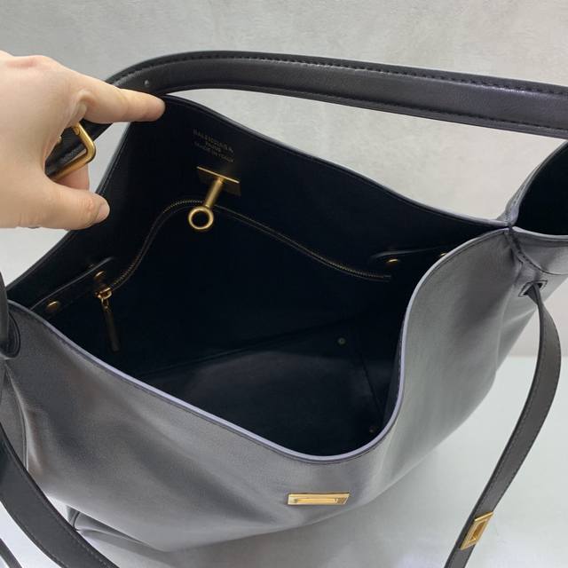 The new Bel Air Hobo debuted in Balenci's winter collections, Look 18 and Look 20. The bag is effortlessly chic yet stylish, with a rich design that perfectly complements both casual and formal wear, showcasing a unique urban chic attitude. It comes with an adjustable shoulder strap. Style number: 805758, Size: 37-14-40cm