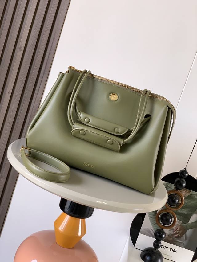 Large soft cowhide leather Madrid handbag Madrid has a soft structured trapezoidal shape with gusseted design, equipped with adjustable handles and pebble magnetic closure. This large version is made of soft cowhide leather. *Can be worn on the shoulder, crossbody or by hand*Adjustable shoulder strap with leather extension strap*Anagram pebble magnetic closure zipper closure*One zippered inner pocket*Anagram pebble metal feet*Nappa sheepskin lining