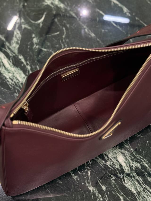 The design of this new shoulder bag is inspired by the exploration of the Hobo silhouette. The soft lines and modern feel of the soft leather make it super versatile and can be carried in many ways. The graceful leather silhouette is combined with the spacious capacity. The interior is equipped with a zipper pocket and a slip pocket, and the metal hardware accessories are embellished in between. The upper body effect is very fashionable and elegant.