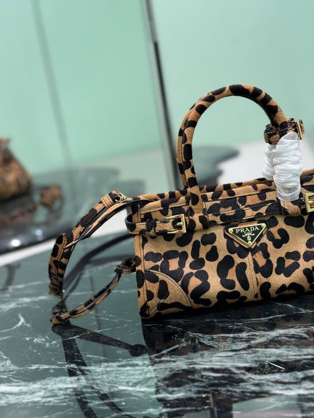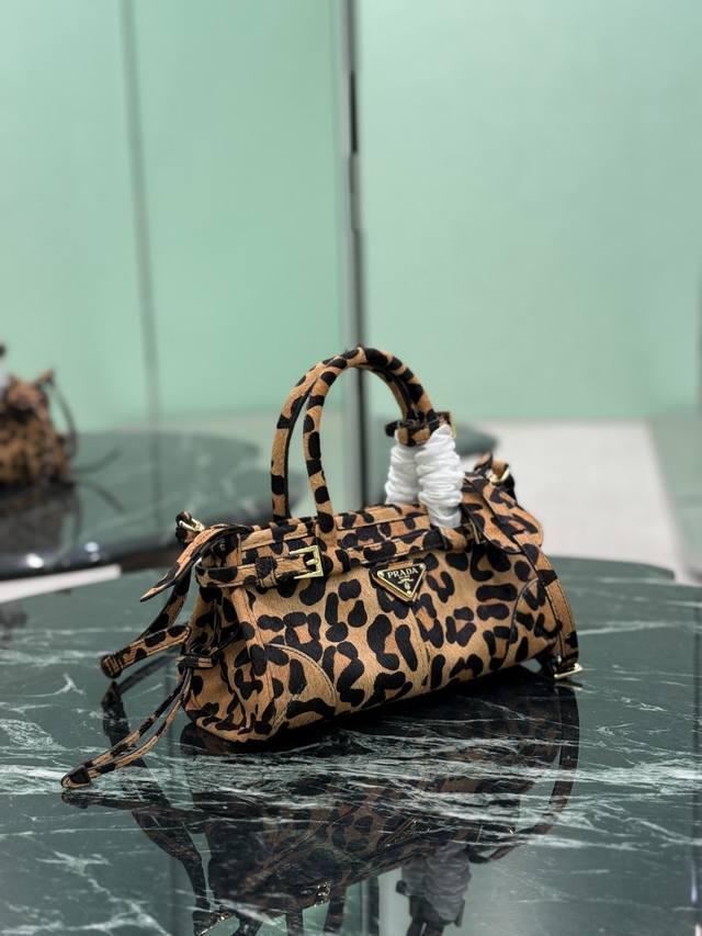 Leopard Print Luxsoft Mini Handbag (Ddd) This mini leopard print handbag exudes a futuristic style. Featuring the iconic triangular logo, it comes with a long shoulder strap for hand-carrying, shoulder-carrying, or crossbody wear. It's incredibly fashionable, with a casual yet sophisticated and practical design. This retro-style bag is perfect for everyday outings, and wearing it gives you a cool and stylish look! (Ddd Dimensions: 23.5