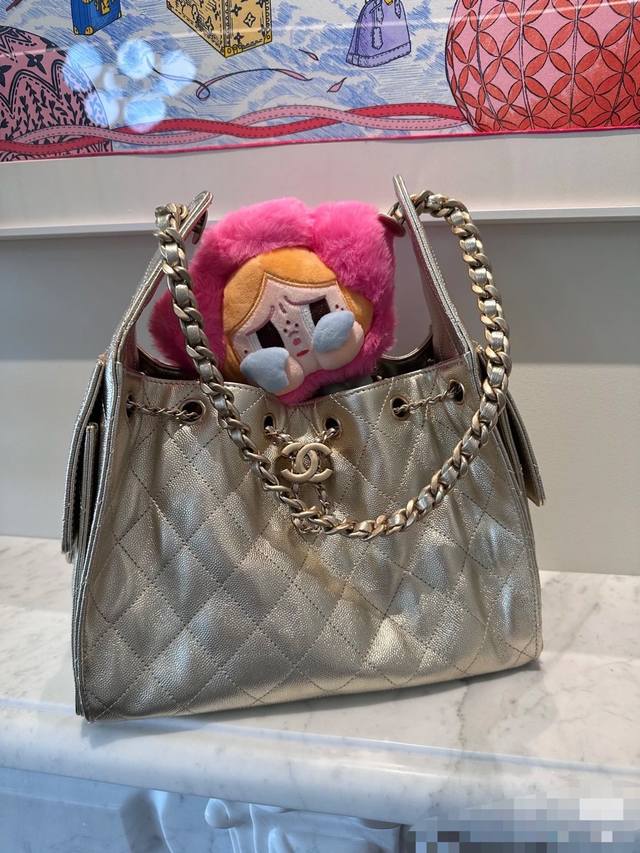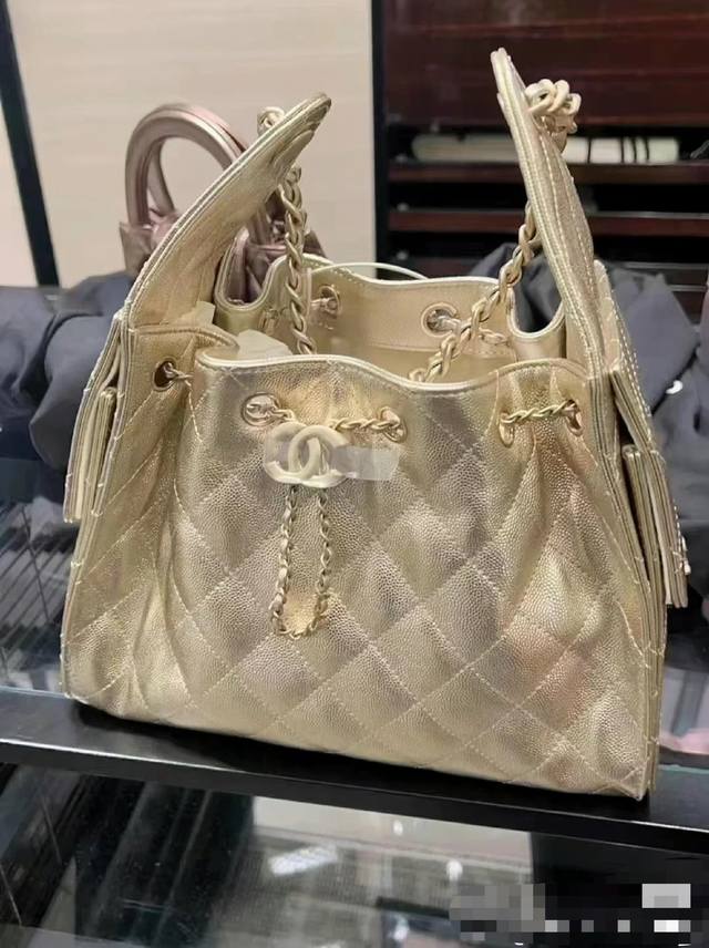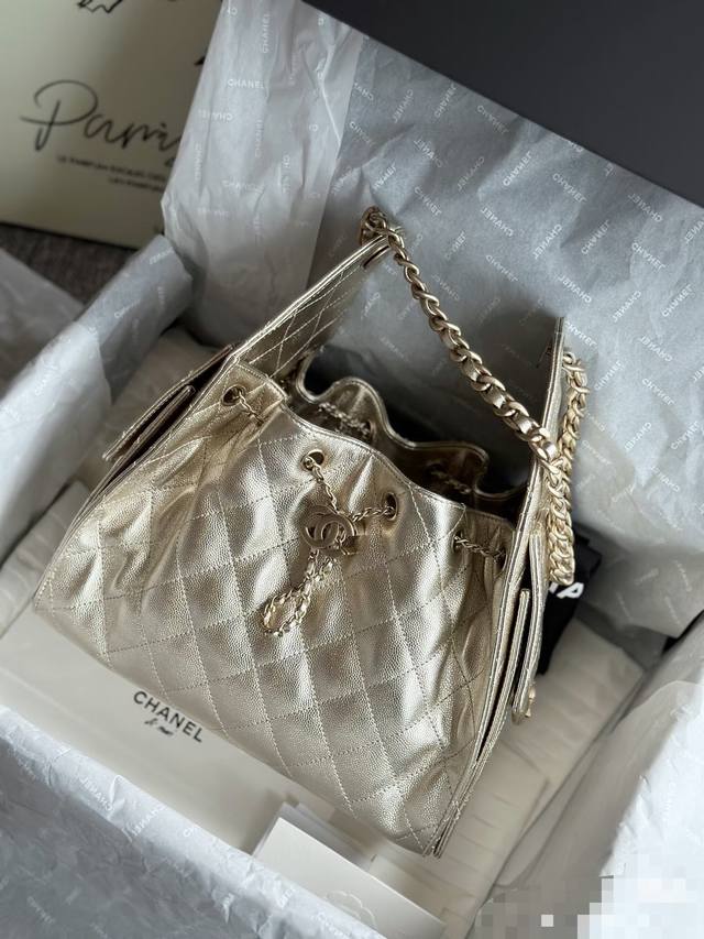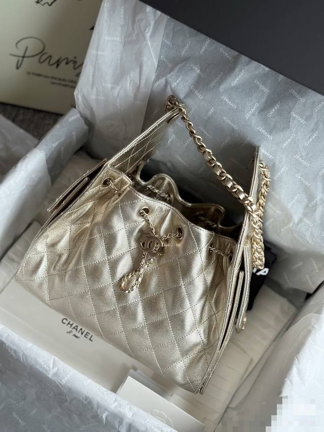 Light champagne gold Ohanel 5634 26C caviar leather new hippie glossy black and gold casual lazy bag style is the undisputed king of spring and summer vacation! The epitome of intellectual elegance and heroine is not only beautiful but also practical, perfectly matching the expectations of most people for bags today. Materials: caviar leather and gold metal!