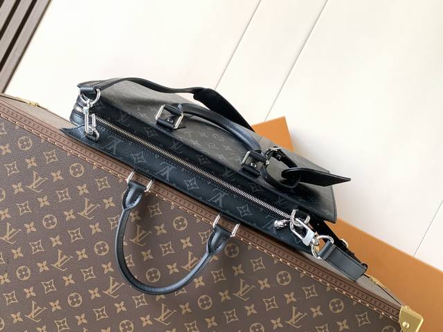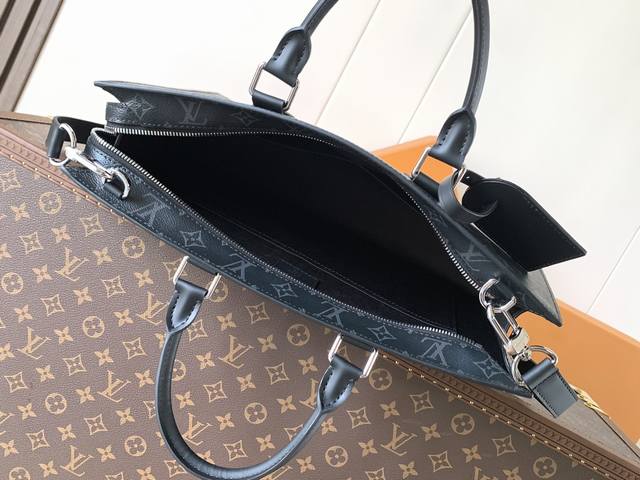 M11742 Black Floral Briefcase with Zipper, Top-Tier Original, 163C (Code 163C). This Sac Plaid 24H handbag boasts the elegant style of Monogram Eclipse coated canvas, with side straps, handle attachments, and a detachable nameplate showcasing its classic style. Ample space includes zippered pockets and slip pockets, one of which can accommodate a laptop. Long and short handles allow for both shoulder and hand carrying. Dimensions: 39 x 30 x 5 cm (Length x Height x Width).