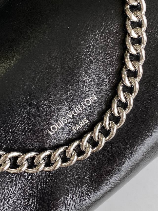M12888 Original, 163C Chip Black Lambskin Leather. This Carryall BB handbag features clean lines that define its full silhouette, embellishing the classic lambskin leather with a glossy Monogram floral metal chain, creating a striking contrast with the Monogram canvas nameplate. An interior zip pocket allows for easy access to cards and small items. 17 x 10 x 26 cm (H x W x Length). Lambskin leather, cowhide leather trim, fabric lining, metal hardware, drawstring and magnetic closure, interior zip pocket, nameplate. Can hold a smartphone, keys, a small wallet, and earphones. Shoulder strap: Non-removable, adjustable. Strap half-length: 40.0 cm. Strap half-length adjustable to: 50.0 cm. Handle: Single handle, detachable.