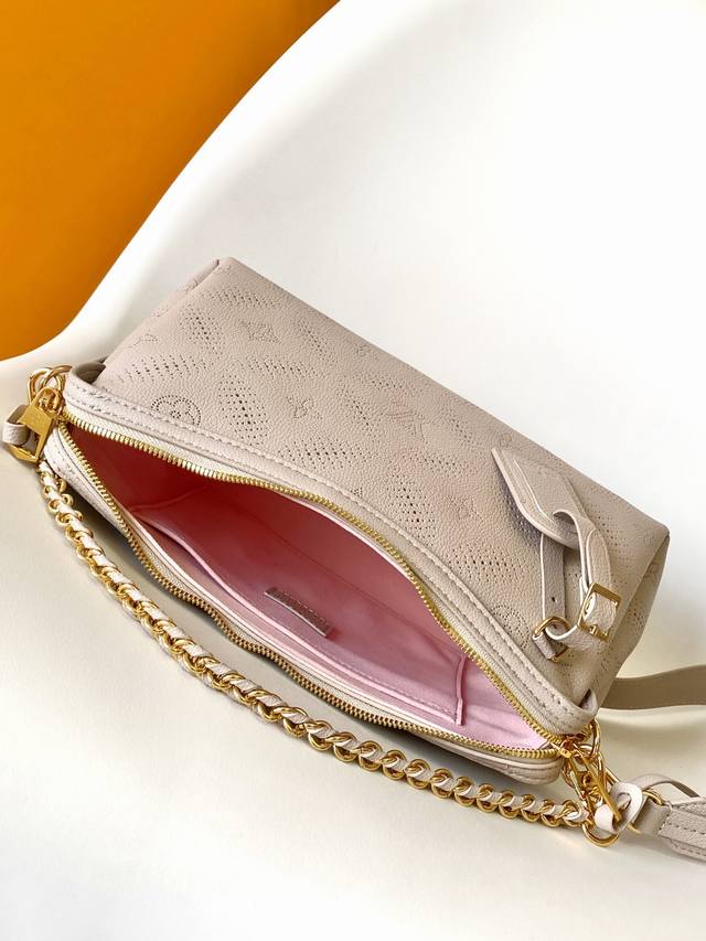 M13157 Top-tier original single-piece dynamic size change handbag. This Hand It All small handbag is crafted from cowhide leather, embodying the brand's Bloom element. The perforated Monogram pattern incorporates floral imagery, while contrasting color details on the nameplate elevate its classic style. An interior slip pocket provides convenient storage for a mobile phone, and the woven chain allows for flexible crossbody or shoulder carrying. 29.0 x 18.0 x 13.0 cm (Length x Height x Width)