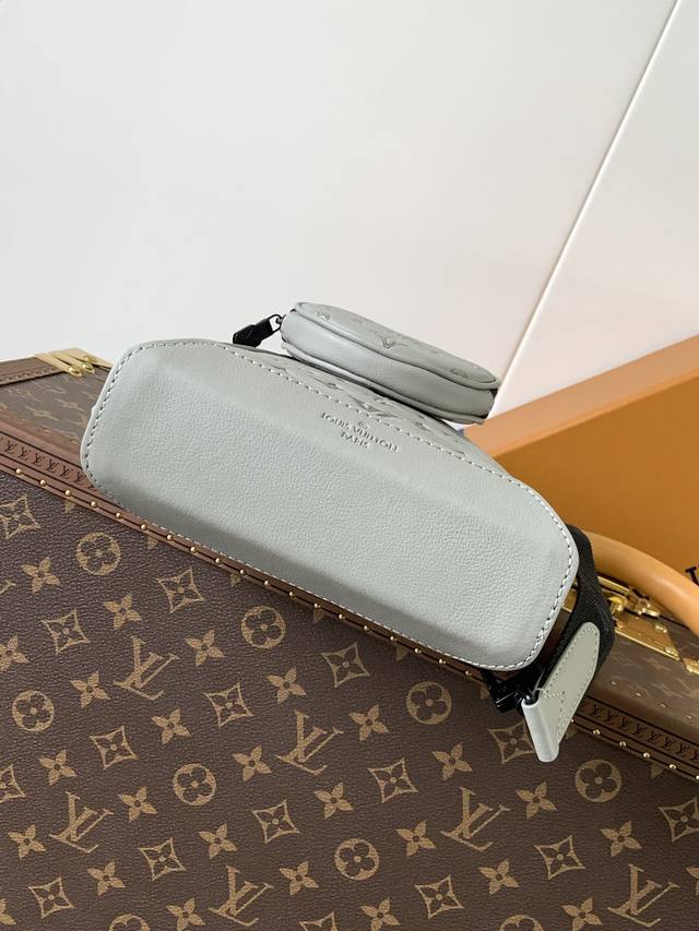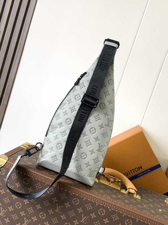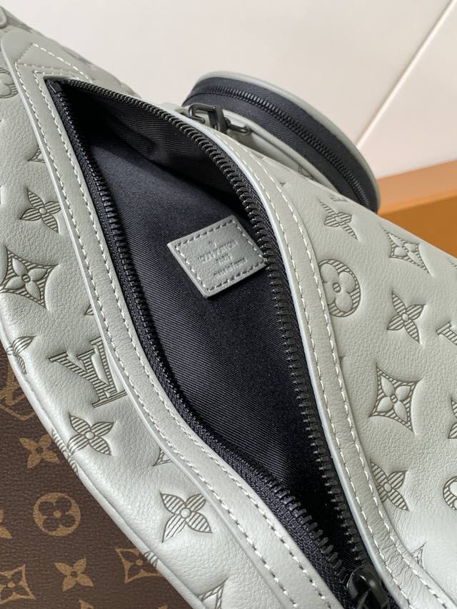 M14916 Grey embossed top original single variable chip 163C full leather embossed chest bag Duo shoulder bag This Duo shoulder bag is shaped with soft cowhide to create a close-fitting configuration, making it a practical choice besides traditional backpacks. The zippered side pocket can store smartphones, the detachable storage bag is convenient for taking and putting items, and the adjustable jacquard fabric shoulder strap can be carried on the left or right shoulder. 42 x 6 x 20 cm height x width x length