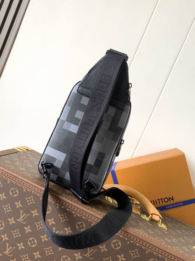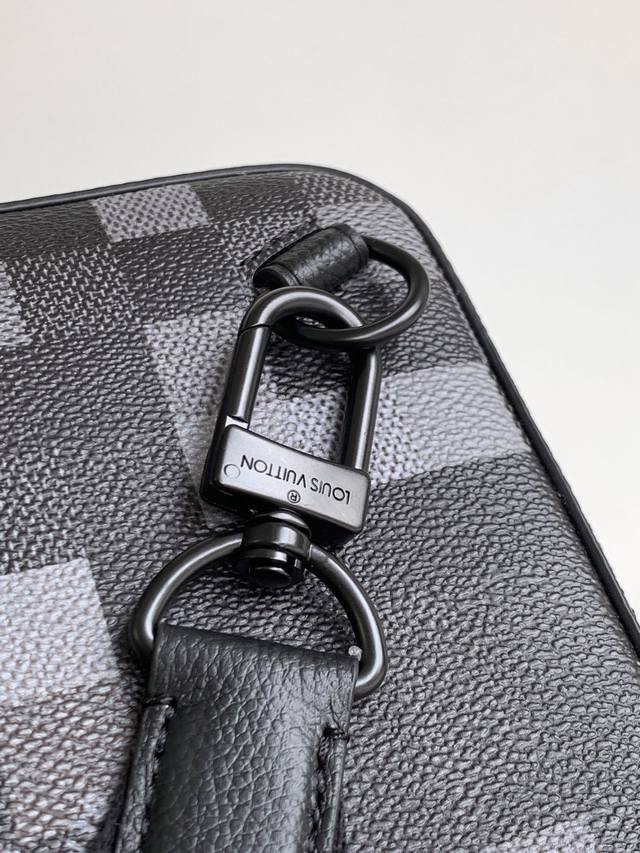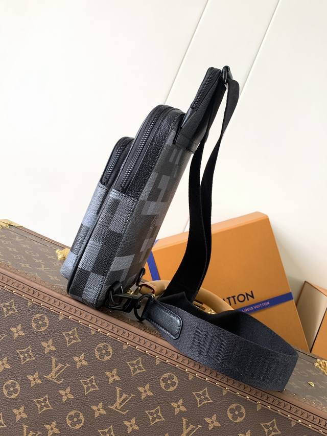 M14953 Top original single code change chip 163C This Avenue shoulder bag series is made of Pharrell Williams's new interpretation of Damoflage Black coated canvas, combining the designer's cutting-edge perspective with the brand's traditional creativity, presenting a camouflage pixel effect Damier pattern, "smart" shoulder strap design, suitable for left or right shoulder carry. 20X31X10Cm