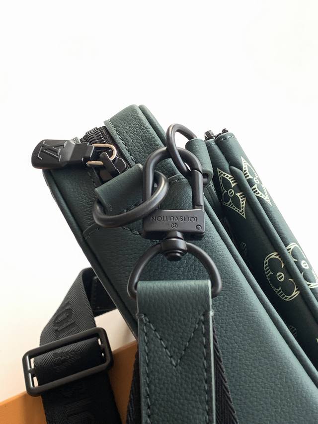 M27154 Green Top-Grade Original Single Serial Number Chip 163C This Trio Messenger bag is crafted from supple Monogram Shadow calfskin leather, featuring a Monogram Shadow leather strap and main compartment. The zippered front pocket, shoulder strap, and attached coin purse are all detachable. The shoulder strap is also adjustable for a comfortable and snug fit. Dimensions: 25 x 18.5 x 7 cm (Length x Height x Width). Features: Monogram Shadow calfskin leather, calfskin leather trim, fabric lining, metal hardware, front slip pocket in the main compartment, interior slip pocket, detachable small coin purse on the shoulder strap, detachable and adjustable shoulder strap, strap half-length: 40.0 cm, adjustable half-length to: 64.0 cm.