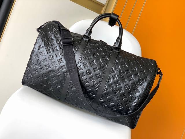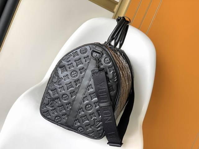M44810 New Version Top-Grade Original Single This Keepall Bandouli Re 50 Travel Bag Is Crafted From Monogram Shadow Leather With A Full-Length Monogram Embossed Pattern,
