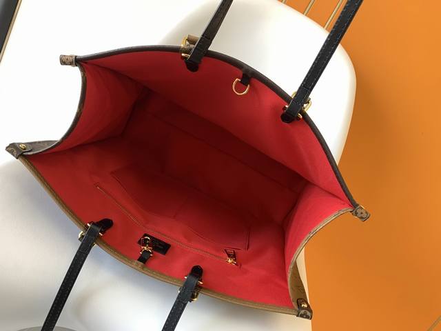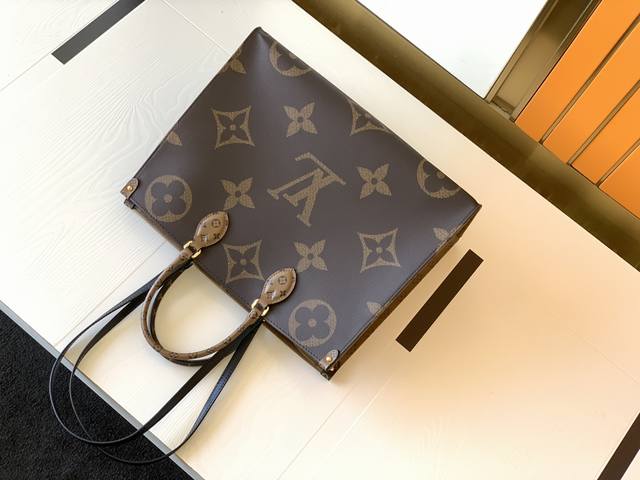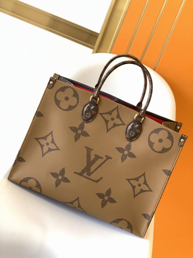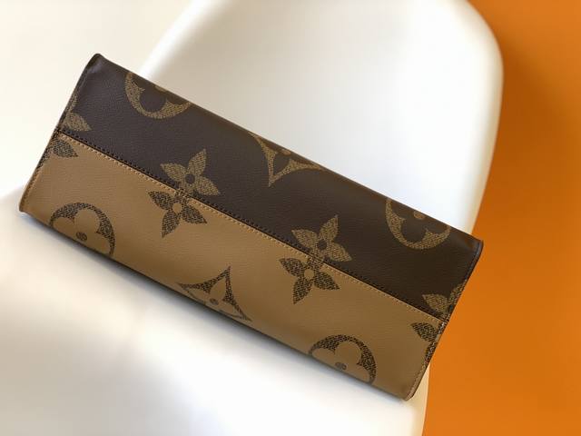 M45320 is strikingly beautiful against the backdrop of Monogram Giant canvas, with Monogram Reverse patterns adorning the sides and handles, offering a glimpse of color and texture variations within a similar style. Its large size provides ample space, and with the shoulder strap and Toron handles, it's perfect for everyday use. Detailed Features: 41 x 34.0 x 19.0 cm (Length x Height x Width ; Monogram and Monogram Reverse coated canvas; Monogram Reverse trim; Microfiber lining; 2 Toron handles; 2 shoulder straps; Zippered patch pocket; Double interior pockets.
