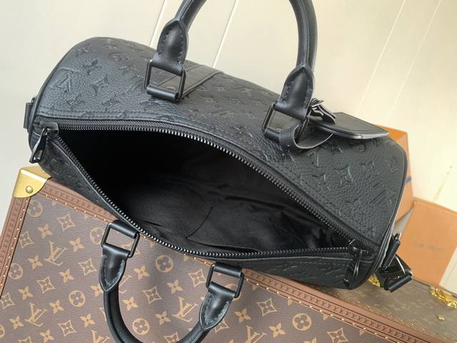 M46655 Black Floral M22765 Embossed Top-Tier Original Single-Item with Variable Code Chip. This Keepall Bandouli