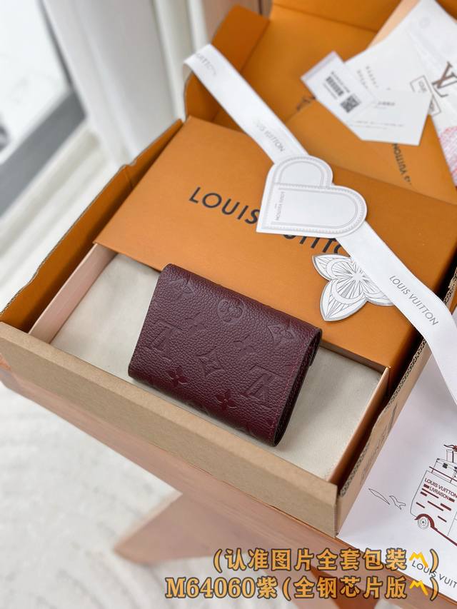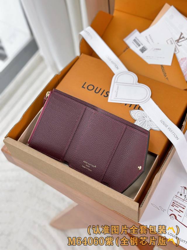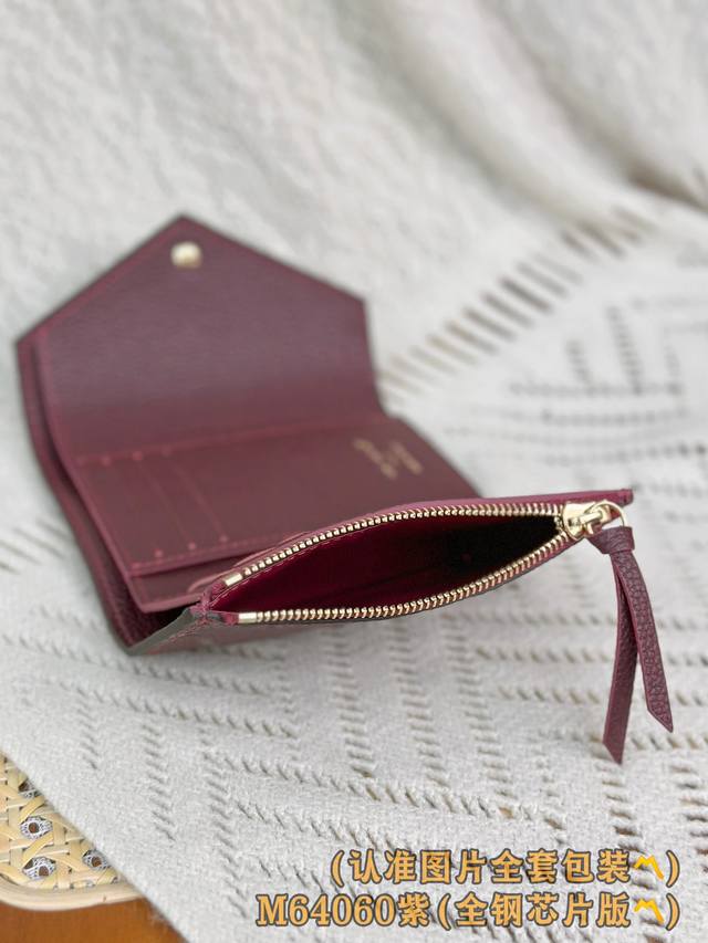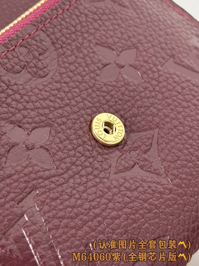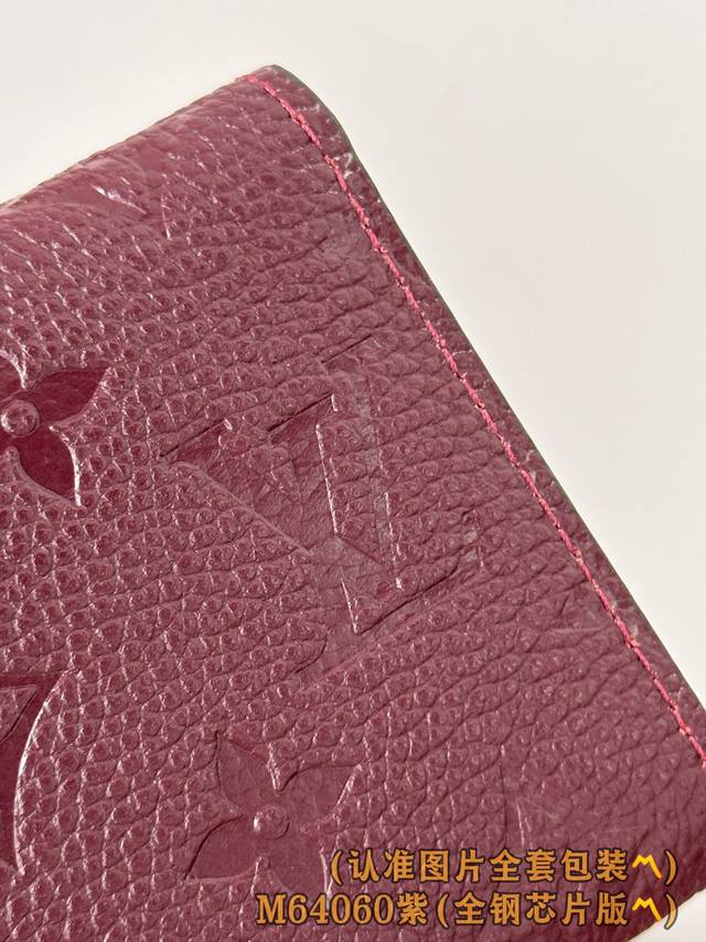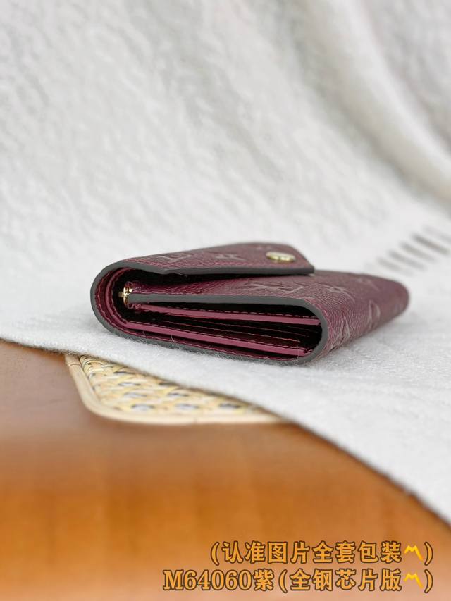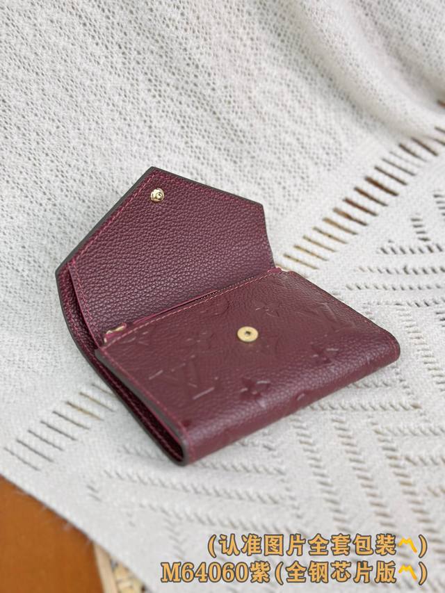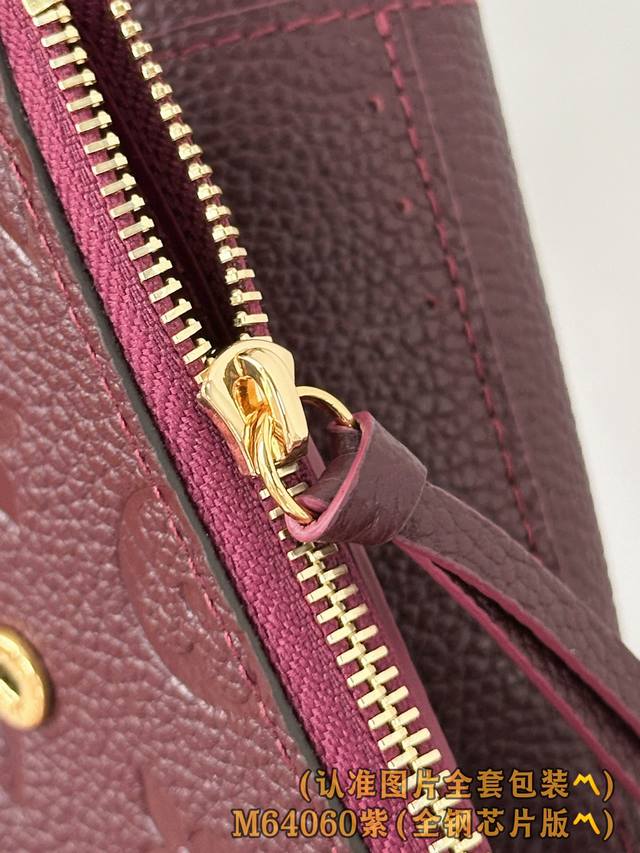 M64060 Purple Grade A All-Steel Personalized Customization! Variable digit chip, Victorine Wallet. The Victorine Wallet is made of soft Monogram Empreinte leather embossed with the classic Monogram pattern, showcasing the elegant style of an envelope structure. Multifunctional, the wallet reveals several practical elements, including a card slot, a bill pocket, and a side zippered coin compartment. Its compact size exudes a feminine charm. 12 x 9.5 x 2.5 cm (Length x Height x Width).