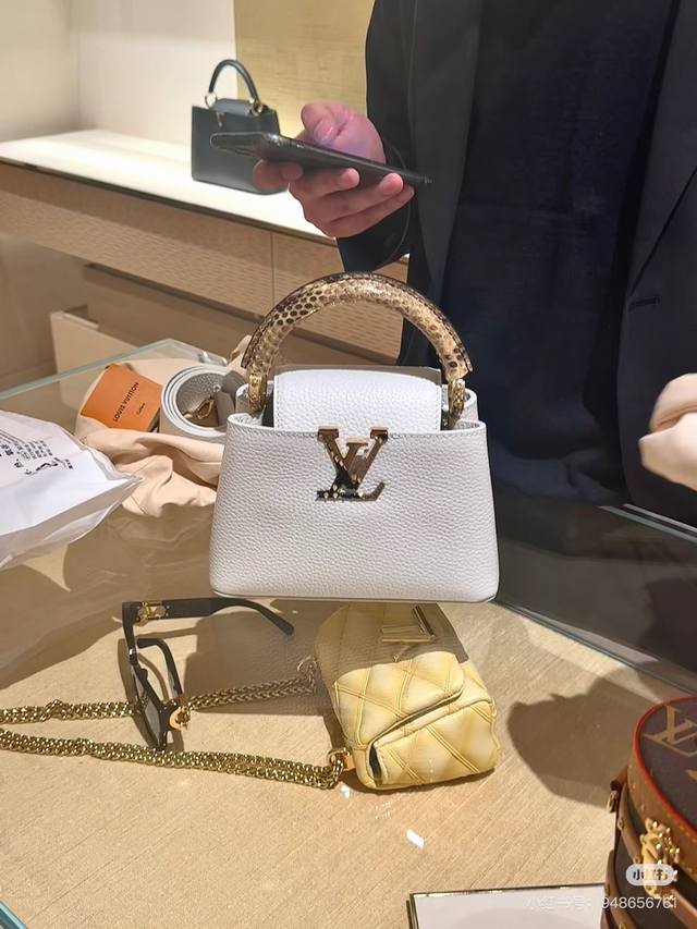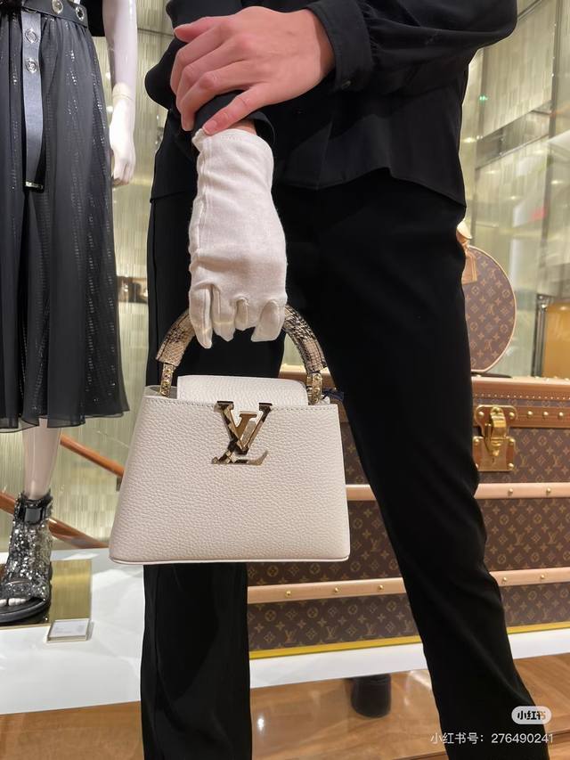 M85515 White snakeskin authentic picture Ddd Full leather Capucines mini handbag (Na Ying style) DDD