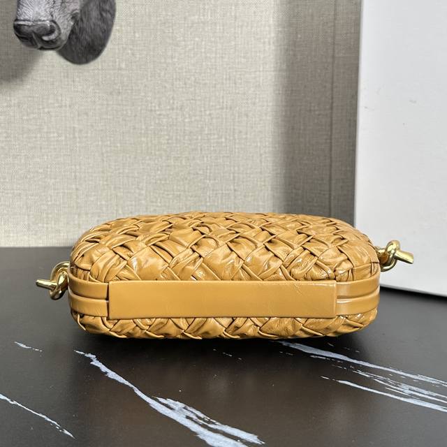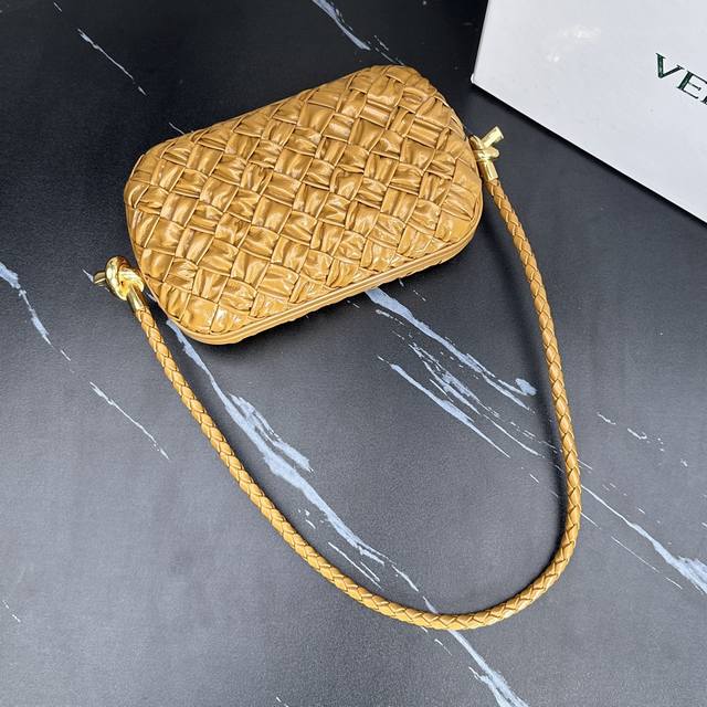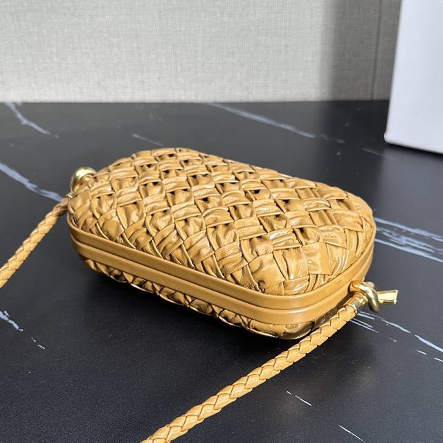 Model: 6057 Bv's evergreen classic clutch makes a grand return in a wrinkled wood finish. Bv's renowned The Knot clutch, with its signature woven texture and knotted clasp, exudes elegance and refinement, making it a favorite among Hollywood stars and socialites, who often pair it with their gowns for formal occasions. The Knot's compact and refined design, understated without logos or cumbersome floral embellishments, creates a simple yet elegant look that imbues a woman with a graceful and graceful presence. While seemingly as simple as weaving a flower basket, the craftsmanship of Bv's artisans is the product of years of accumulated experience. The weave features this season's Foulard intreccio leather design. The new Muse brass twisted metal offers a more minimalist aesthetic, adding a modern and sophisticated touch. The Knot showcases the exceptional craftsmanship and creativity of the intreccio weave pattern, its contours reinterpreting a traditional classic. This collectible classic gets its name from its button-closure design. Special weaving + metal frame combination