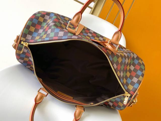 N00170 163C01 Dynamic Chip This Keepall 50 Monogram Crystals handbag is crafted from a lustrous silk satin base, printed with the Monogram pattern and adorned with tens of thousands of imitation crystals that harmonize with the bag's design, giving it a captivating shimmer in the light. This exceptional bag can be carried by hand or transformed into a shoulder bag with the detachable and adjustable shoulder strap. Dimensions: 29 x 23 x 50 cm (H x W x Length); Monogram pattern; Crystal-studded satin fabric; Cowhide leather trim; Fabric lining; Distressed metal hardware; Carry-on baggage size; Double zipper closure; Padlock; Zippered interior pocket; Shoulder strap: Detachable and adjustable; Strap half-length: 36.0 cm; Strap half-length adjustable to: 50.0 cm; Handles: Double handles.