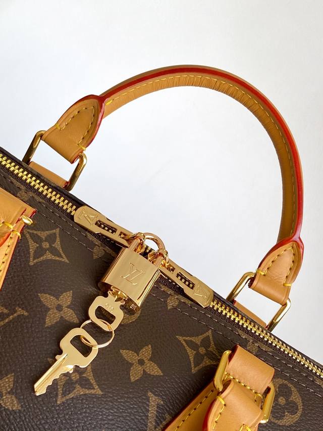 The Speedy Soft 30 Boho handbag, a premium original in black with dynamic resizing, is crafted from classic Monogram coated canvas, accented by a leather lining and zippered interior pocket. Ostrich leather trim and a beaded chain create a visual focal point, while a key holder and address tag create ingenious details. The Toron handle allows for versatile carrying options. 30.0 x 21.0 x 17.0 cm (L x H x W)