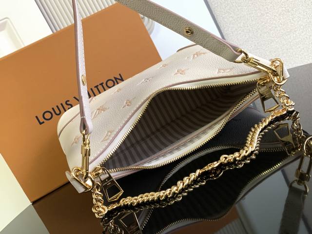 This handbag reinterprets classic leather with a tone-on-tone aesthetic, adding an elegant sheen with a detachable chain and floral embellishments. The clever design allows for multiple carry options, and the interior patch pocket easily accommodates a smartphone.