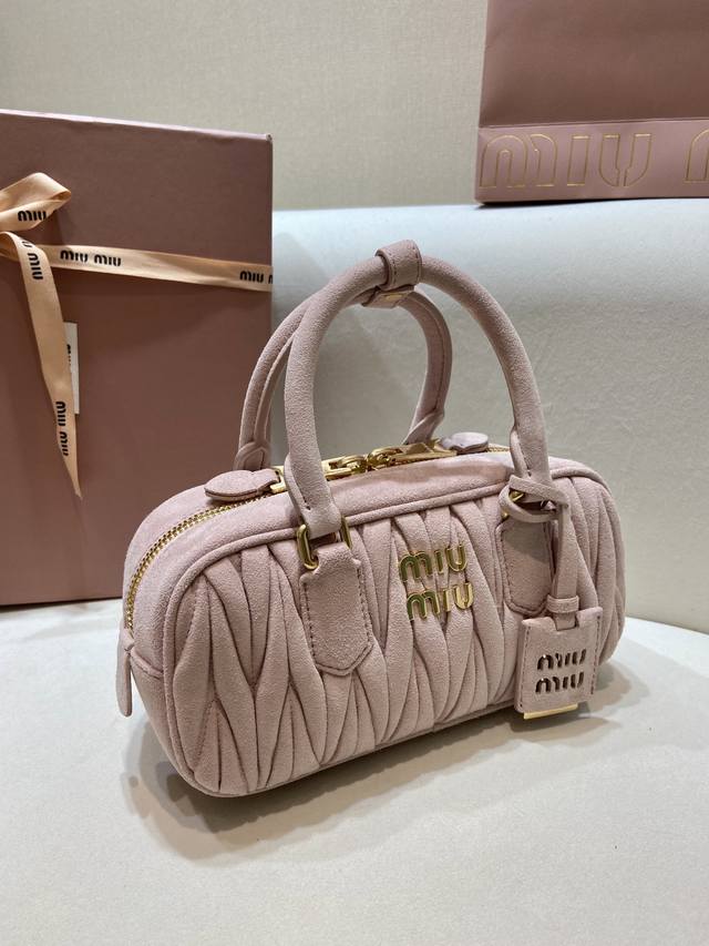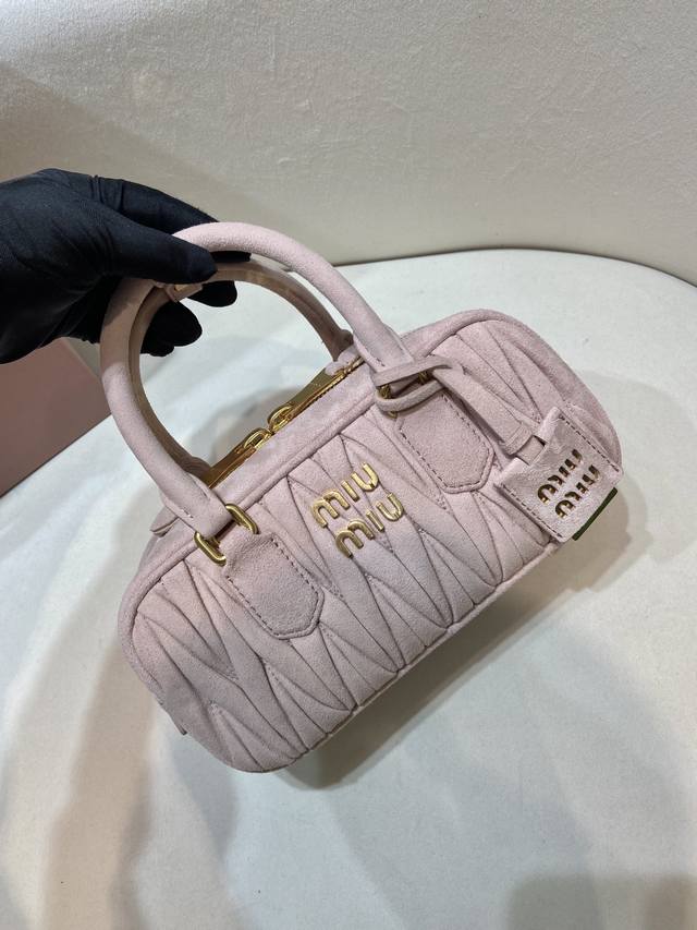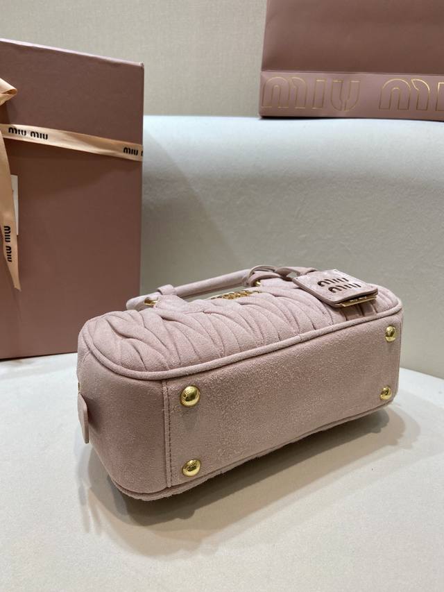 New Arrival 5Bb142 Suede Miu New Bowling Bag Softy Pad A true top contender! The classic and sophisticated bowling bag design adds a touch of chic to the overall look, contrasting with Miu's youthful image. The embossed logo, without excessive embellishment, boasts clean, understated lines that captivate. Available in different sizes, it can be used as a decorative crossbody or handbag for commuting or everyday wear, satisfying both capacity and style needs. Almost every fashion blogger owns one. Dimensions: Length 22 x Height 10.5 x Base 7.5 cm.