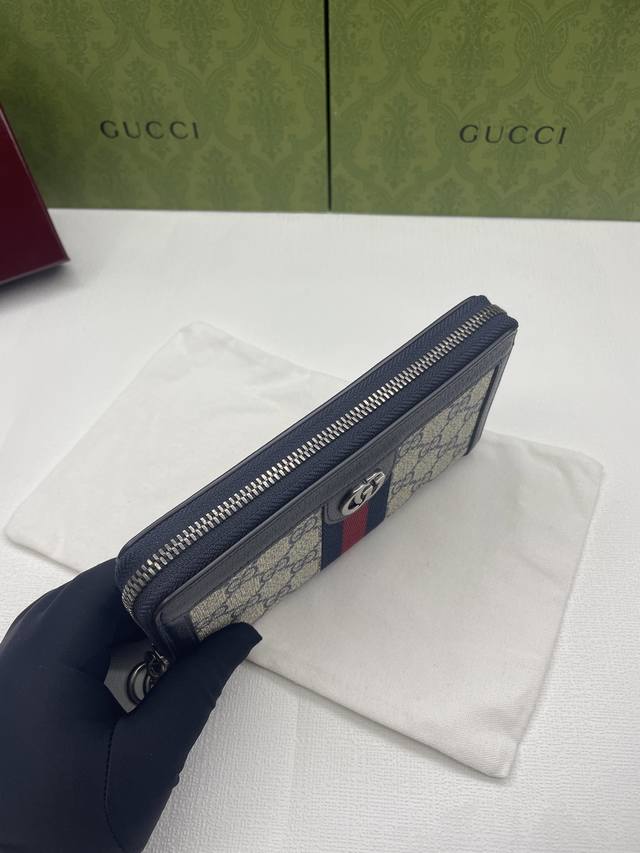 New G brand item, boutique quality, original leather, real product photos. Style number: 523154 Brown PVC Blue Leather. This fully zipped wallet is made of G premium synthetic canvas, featuring the iconic pattern and striped webbing, crafted with top-quality overseas hardware! Dimensions: W19.5Xh11Xd3Cm. DDD