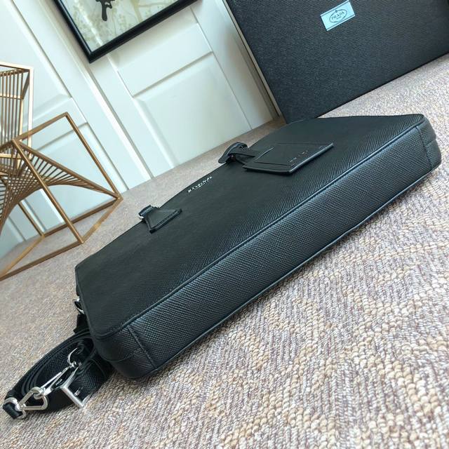 New men's bag exclusive first release, thickness 4Cm4Cm, another ultra-thin model 2Ve368B, scattered word label, counter synchronization, using imported original factory coarse cross pattern men's bag, top hardware, light and practical, men's favorite, length 36X height 28X thickness 4,