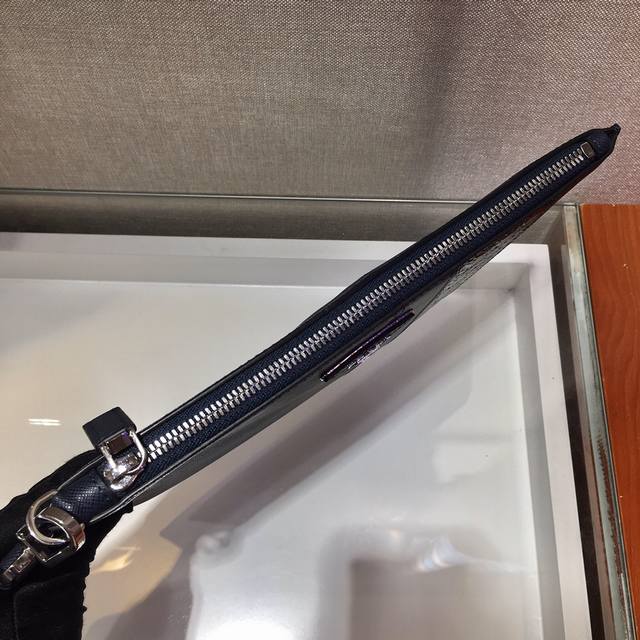 New Men's Clutch 2Ng005G, original quality, made of Saffiano leather, one zippered compartment, internal pocket, six card slots, lambskin lining, polished stainless steel hardware, internal logo, external triangular logo. Combining practicality and a unique design style, it appears exceptionally fashionable and sophisticated. Length 28cm x Height 18cm.