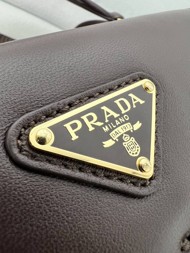 This handbag perfectly blends sophistication and functionality, crafted from imported lambskin. It features a soft silhouette and multiple pockets. The lightweight and practical design combines sporty and versatile elements, adorned with an enamel triangular metal logo and leather details. It comes with two detachable shoulder straps, offers ample capacity, and is simply perfect. Another timeless and popular style, the large size is unisex. Grab yours now! Length 30cm x Height 14cm x Base 10cm
