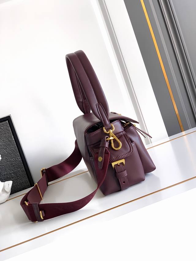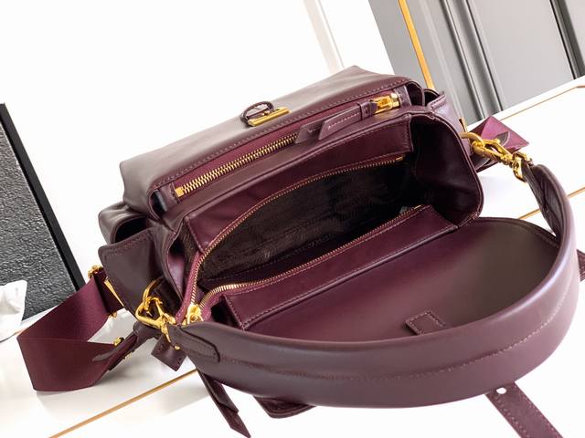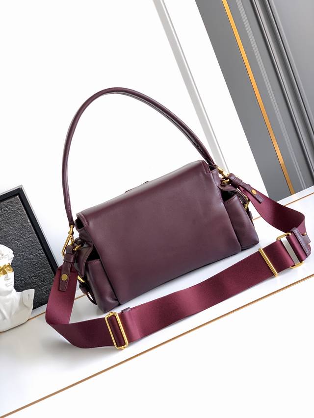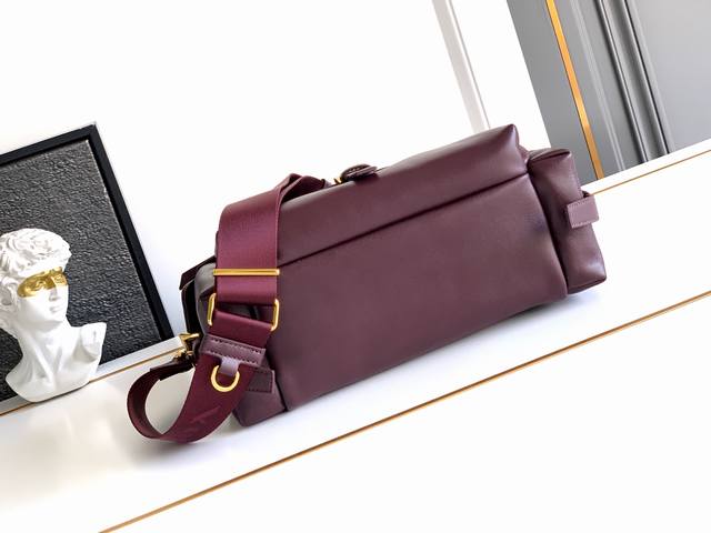 New Messenger Bag. This handbag perfectly blends sophistication and functionality, crafted from imported lambskin. It features a soft silhouette and multiple pockets. The lightweight and practical design combines sporty and versatile elements, adorned with an enamel triangular metal logo and leather details. It comes with two detachable shoulder straps, offers ample capacity, and is simply perfect. Another timeless and popular style, suitable for both men and women. Grab yours now! Model: 1Bd394 Dimensions: 30X14X10Cm