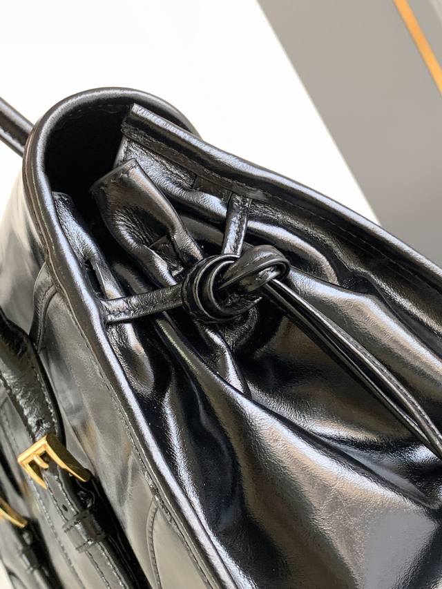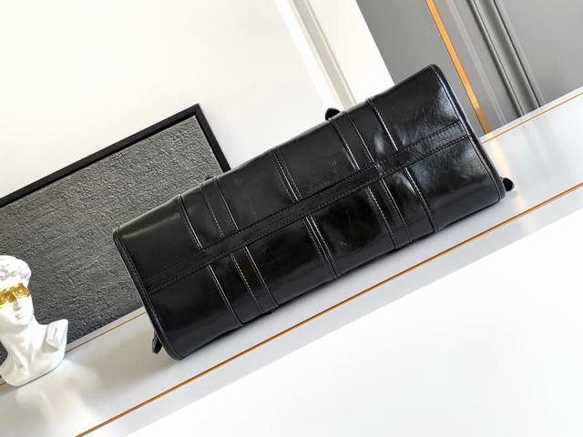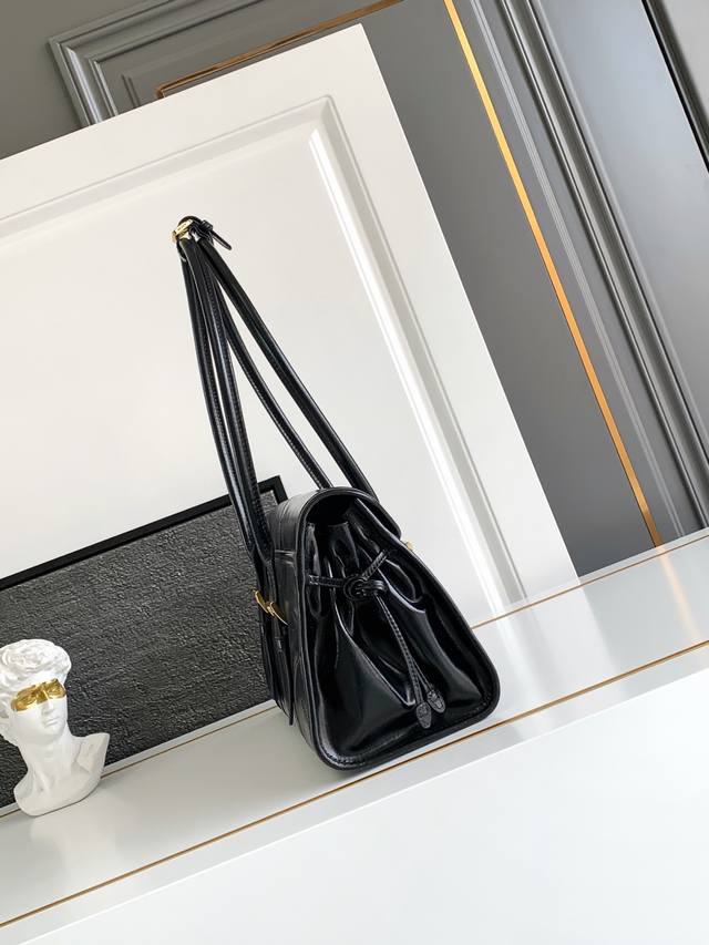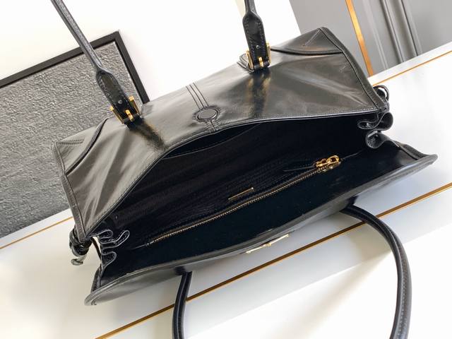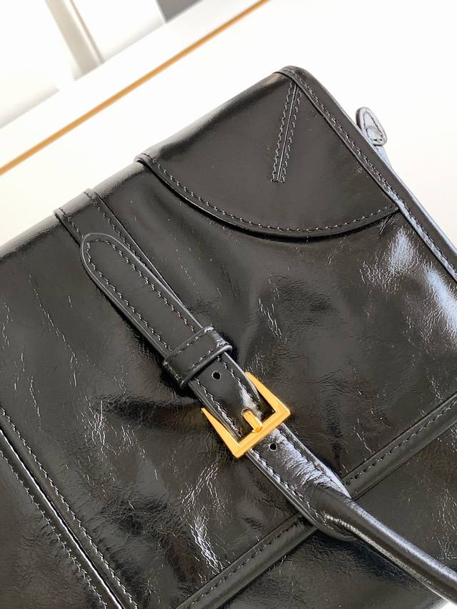 New waxed leather underarm bag, this double-buckle Soft Lux leather handbag features a simple yet sophisticated design, and its glossy color exudes a classic vibe. It embodies a modern, casual look, with long handles for easy shoulder carry. The back leather pocket, enameled metal triangle, and magnetic flap closure provide ample storage. This highly practical and practical bag is a must-have for fashionistas, so grab it now! Model: 1Bd376 Dimensions: 31 x 15 x 12 cm