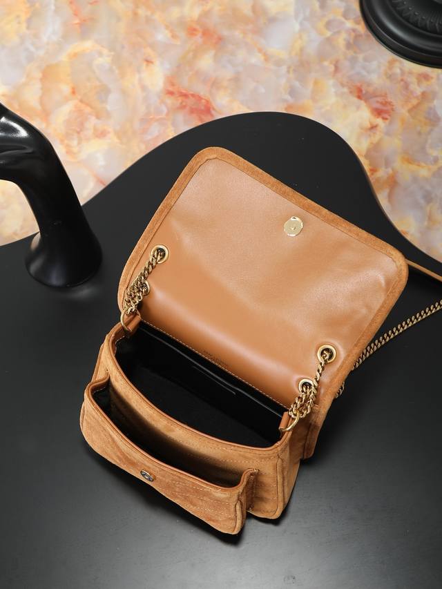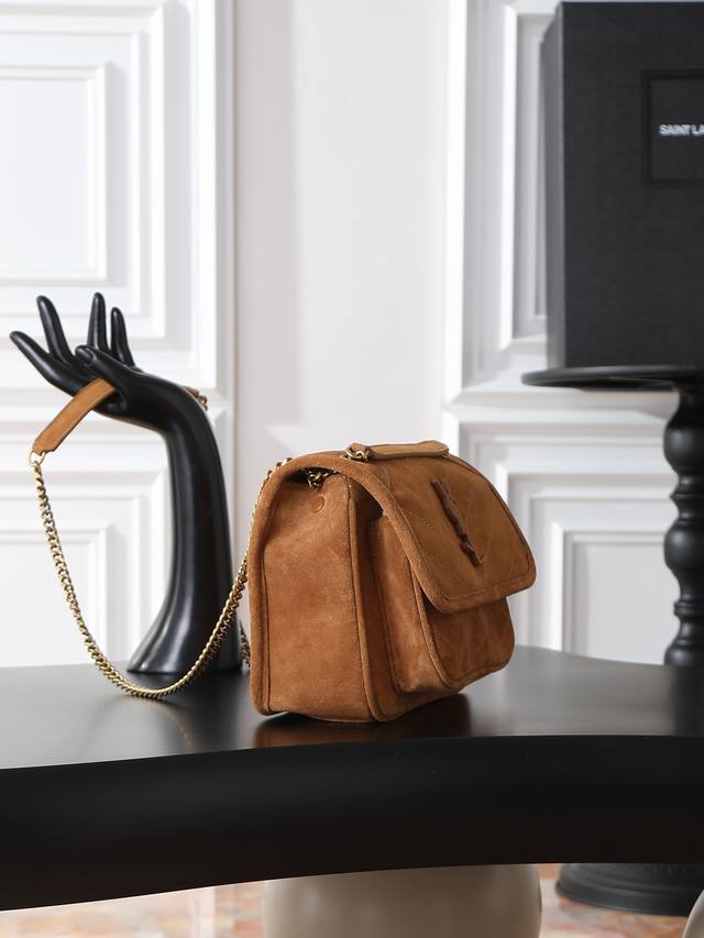 Niki_22Cm This tan matte finish bag with gold hardware is incredibly cool! The shape is perfect, and the imported Italian suede creates a retro style. It can be carried by hand or under the arm, exuding confidence. It's unisex and combines fashion and functionality. It's comfortable and stylish to wear. The extra-large capacity makes it perfect for daily commutes and travel. Style No.: 633185 633160 Dimensions: 22
