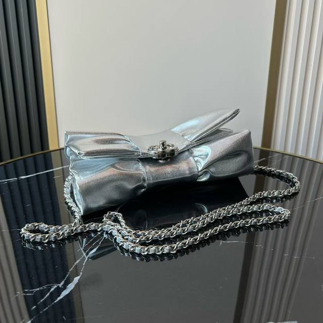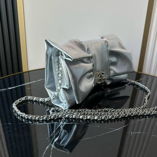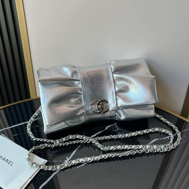 Official website update: Shimmering silver Ohanel 24B cotton leather evening bag, handcrafted bow bag. As a bow lover, I simply couldn't resist this bag. A rare treat for pink lovers! It's sophisticated, retro, and incredibly stylish. A must-have for any princess, it's bursting with girlish charm. Although it's an evening bag, I prefer to wrap the chain around it more to make it a shoulder bag. Casual and sweet, this bag also has a great capacity; it easily fits my phone, lipstick, and car keys. It's one of the most cost-effective bags this season! Dimensions: 15 x 22 x 4 cm. Style number: As5129 DDD