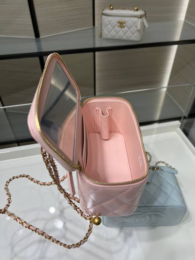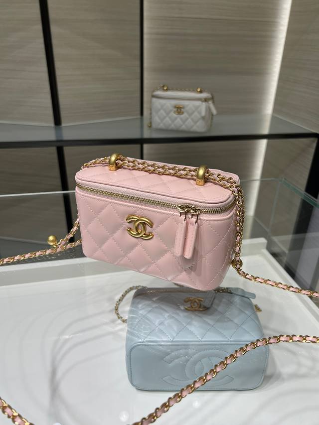 Ohanel 25S New Oil-Waxed Cowhide Double Gold Ball Box Bag Retro Chain Crossbody Shoulder Bag Ddd Box Bag Chain Can Be Drawstring Length Ap4750Y Size 17X9.5X8 DDD