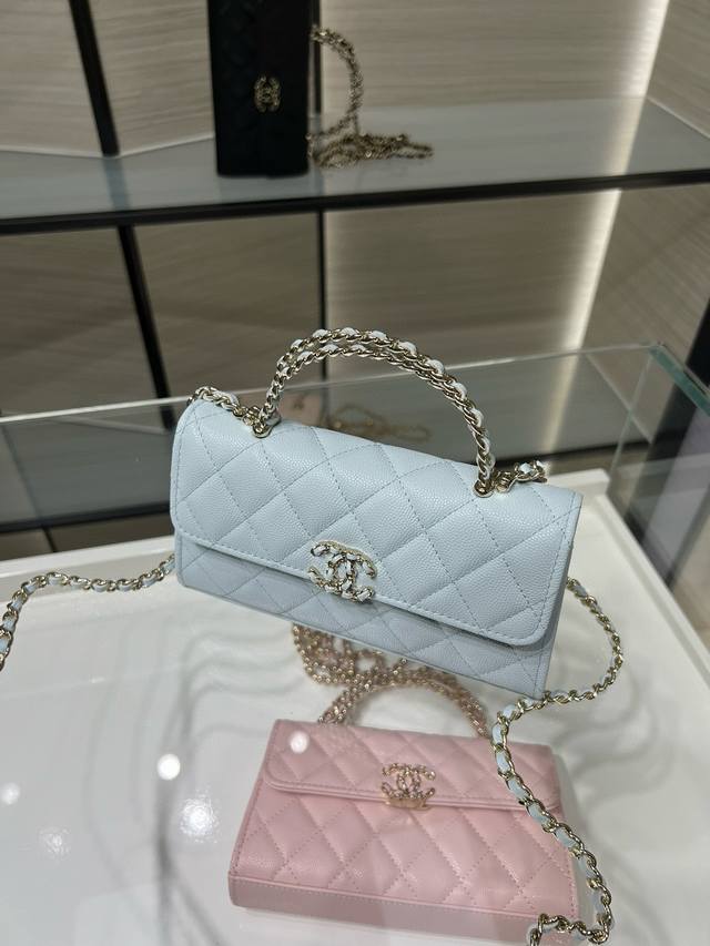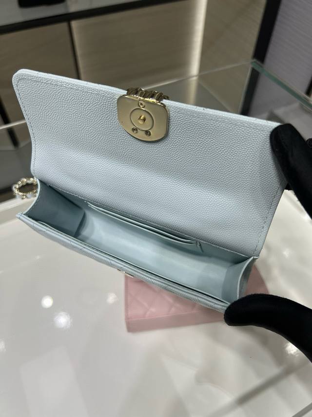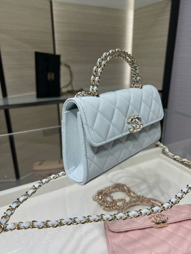/ Ohanel 25S new season's hottest small ball leather Kelly handle bag Baby blue Ap