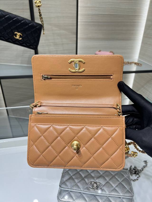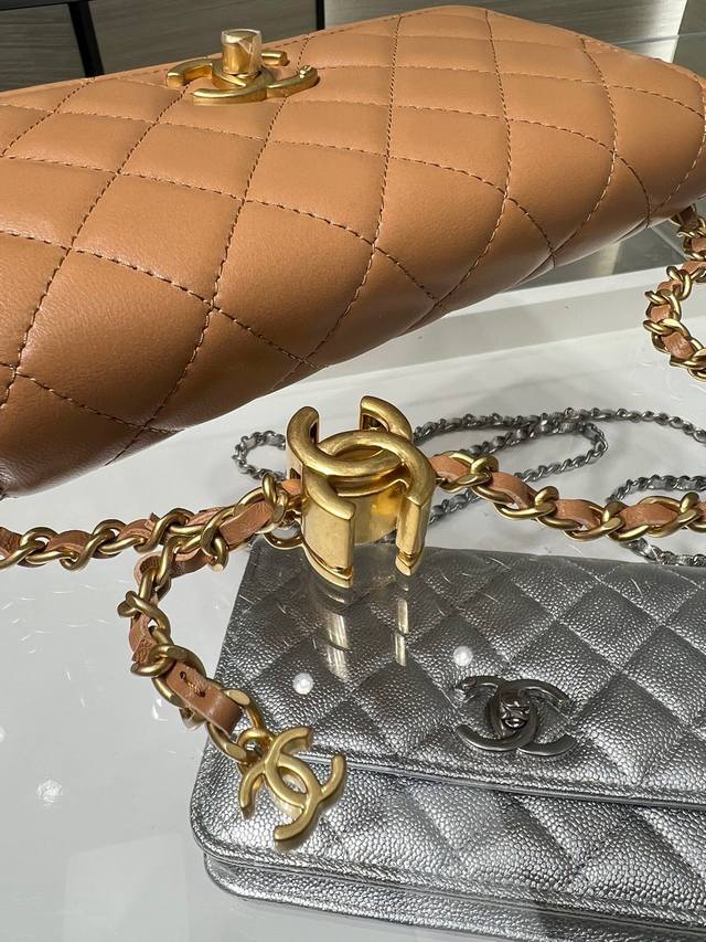 / Ohanel latest 25B Woc double C buckle adjustable chain bag caramel color importe