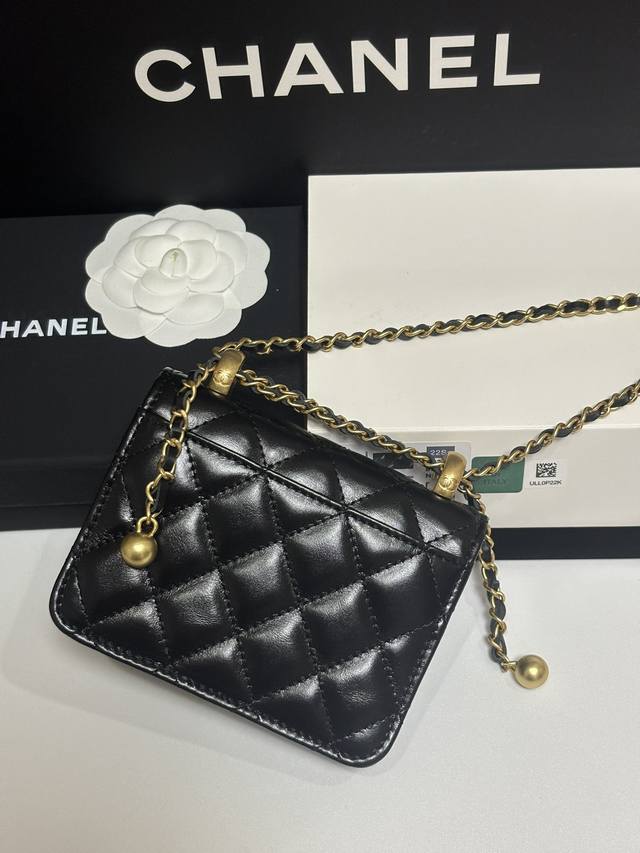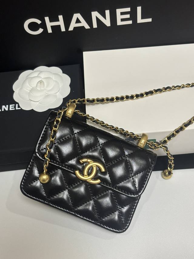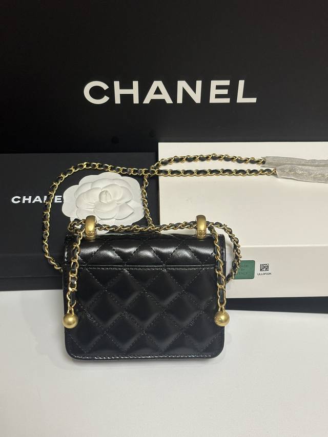 ohanel Small double gold ball imported waxed cowhide small double gold ball fortune bag crossbody bag AY size: 12cm.