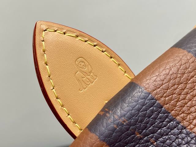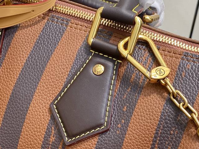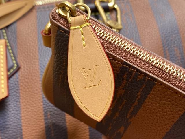 Original boutique M14064 coffee striped full leather Speedy pillow bag. Speedy P10 Bandouli