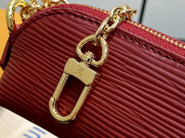 Original boutique M25685 fuchsia chain lipstick bag, a new seasonal item. The Lipstick bag reconstructs the classic Lipstick bag in a miniature version, creating a perfect storage solution for a single lipstick. Monogram canvas with a Vuittonite lining and a lustrous chain and spring clasp embody the eclectic blend of heritage and functionality. 6 x 3.3 x 11 cm.