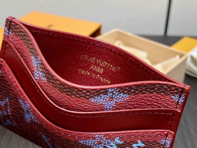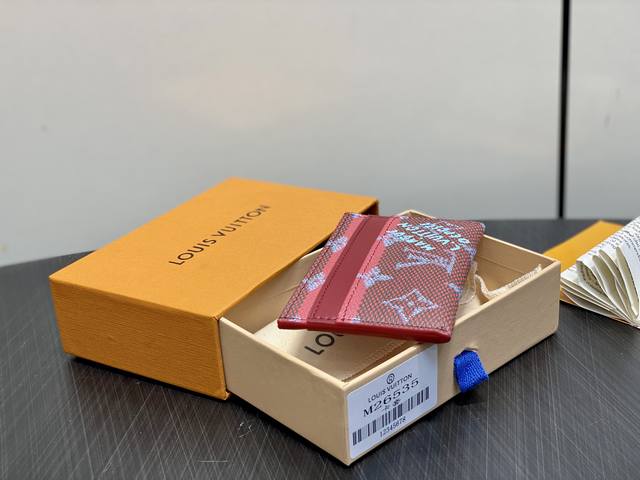 Original boutique M26535 Red Silkscreen Card Holder and Wallet Porte Cartes Double Card Holder. This card holder, crafted from the new Monogram Eclipse coated canvas, is stylish and compact, fitting easily into your pocket. It features a central pocket and four slots for credit cards, travel receipts, and business cards. Dimensions: 11 x 7 x 1.5 cm (Length x Height x Width