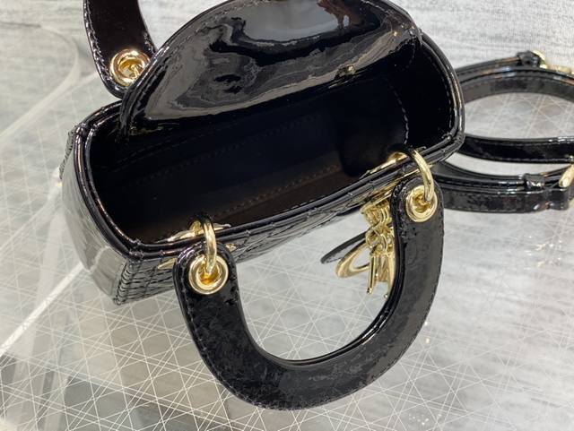 Lady's latest Micro patent leather series, a bag that can't hold anything but a cute little bag, carefully made with soft black, iconic letter hardware buckle, exquisite bag shape, simple and stylish and versatile, small capacity, can only hold lipstick, car keys, and can also be used as a card holder