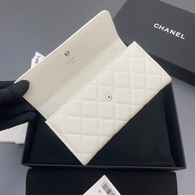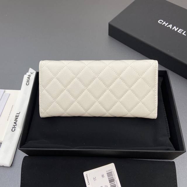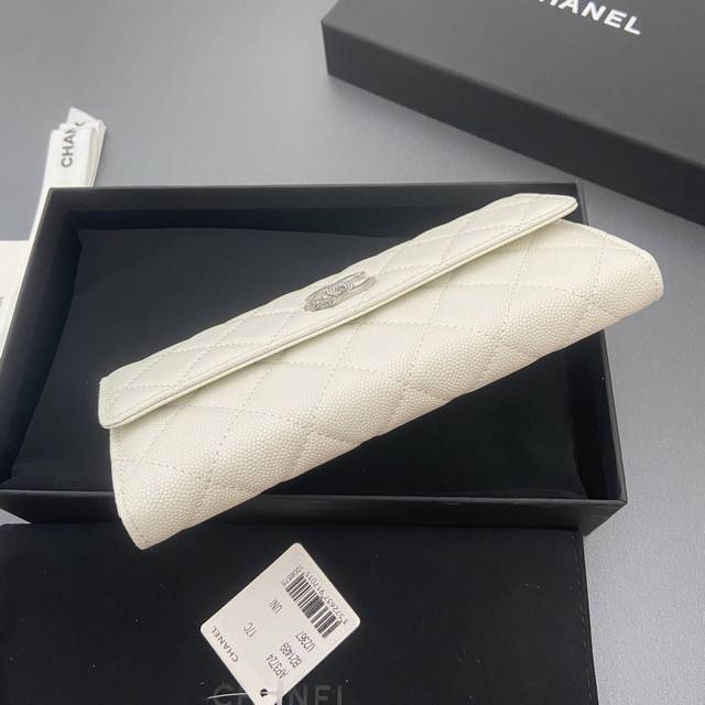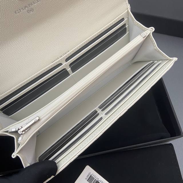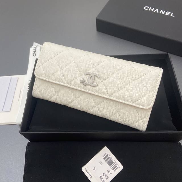 Original Leather 25B New Series Caviar Leather with Star Logo, Sparkling Blingblibg~ Flap Long Wallet Series White with Fine Ball Pattern and Silver Star Hardware 12 Card Slots, Two Bill Compartments Two Compartments, 1 Zippered Pocket Item Number: 3724 Dimensions: W19