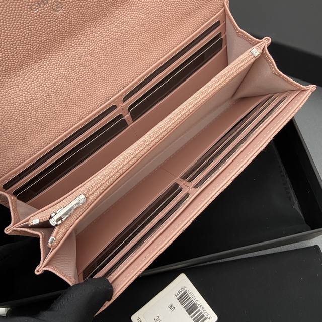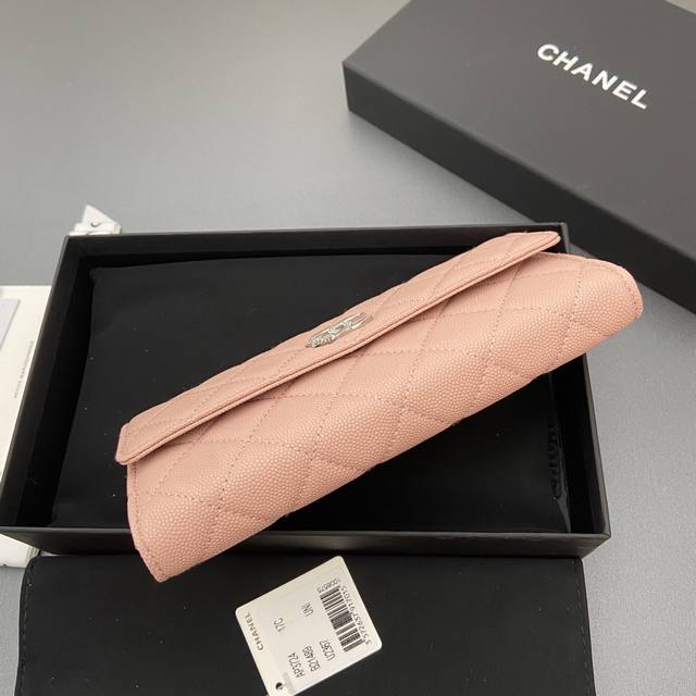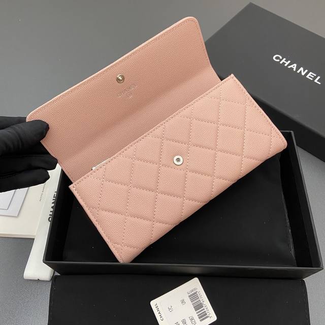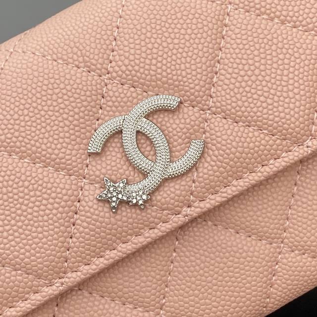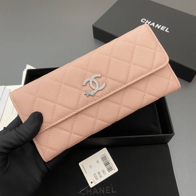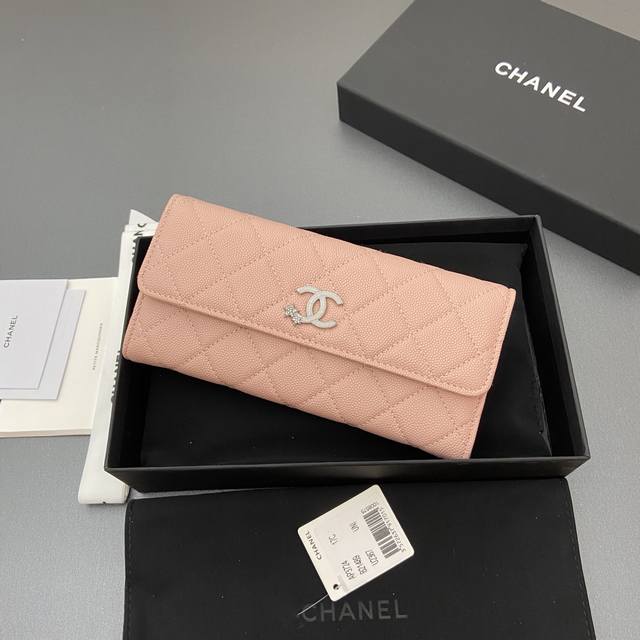 Original Leather 25B New Series Caviar Leather with Star Logo, Sparkling Blingblibg~ Flap Long Wallet Series Pink Tinted Silver Star Hardware 12 Card Slots, Two Bill Compartments Two Compartments, 1 Zippered Pocket Item Number: 3724 Dimensions: W19