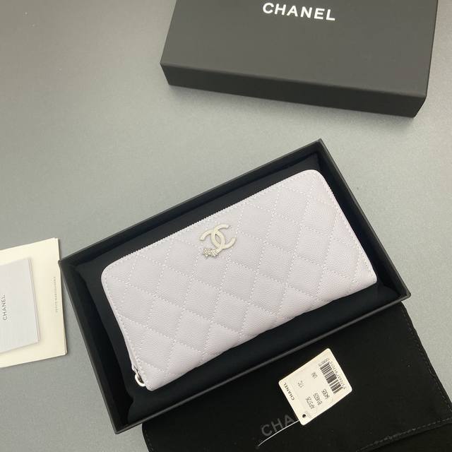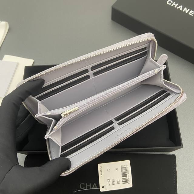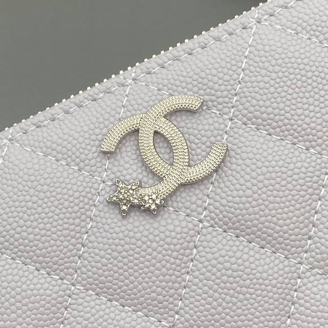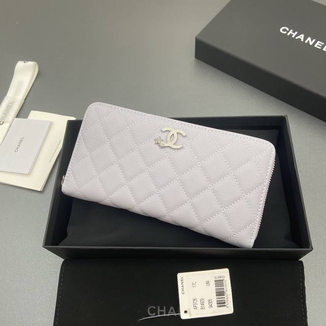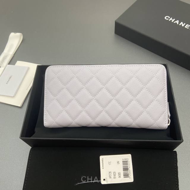 Original Leather Bag, 25B New Series Caviar Leather with Star Logo, Sparkling Blingblibg~ Zipper Bag Series, Light Purple with Fine Ball Texture and Silver Star Hardware, 12 Card Slots, Two Bill Compartments, Two Compartments, 1 Zipper Pouch. Item Number: 3726. Dimensions: W19
