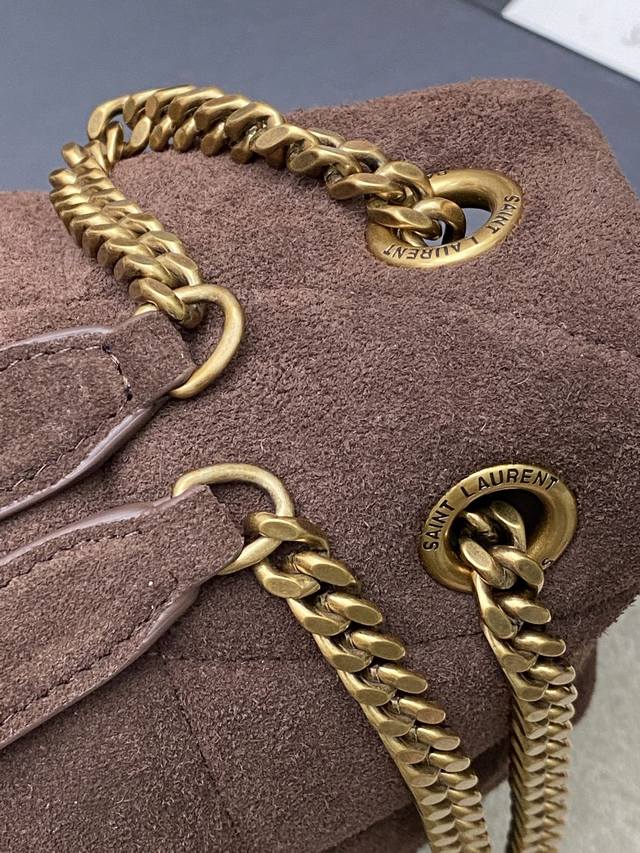Original Leather Bag, Coffee Matte Antique Gold, Large Quilted Suede, Made of Authentic Original Leather, Soft and Delicate to the Touch, Like Holding a Cloud. The classic Y brand logo, chain, and buckle hardware are all made of matte gold silver. The bag opening uses a magnetic snap closure after folding, providing excellent sealing and security. Model: 577475 Original Leather Bag Size: 35X23X13.5Cm