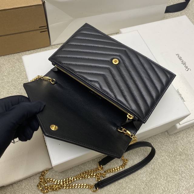 Original Leather Black Lambskin Gold New Color WOC Small Envelope Bag Original Leather Version Speaking of envelope bags, this one from Y brand absolutely has to be mentioned! The entire bag is made of original lambskin, with a structured shape and a comfortable feel! The detachable shoulder strap design enriches the bag's versatility; the shoulder strap can be removed to use it directly as a clutch or evening bag. It has multiple card slots inside, making it incredibly practical. Just carry your phone and cards, and you can easily go anywhere! Model: 441974 Original Leather Size: 19X11.5X4Cm