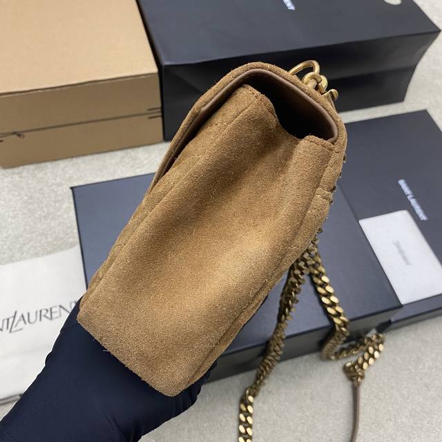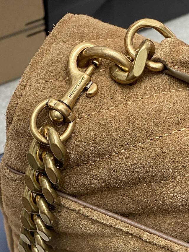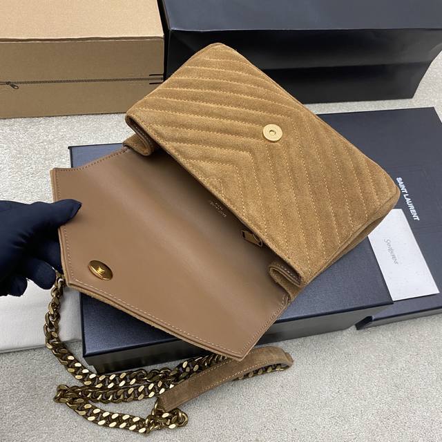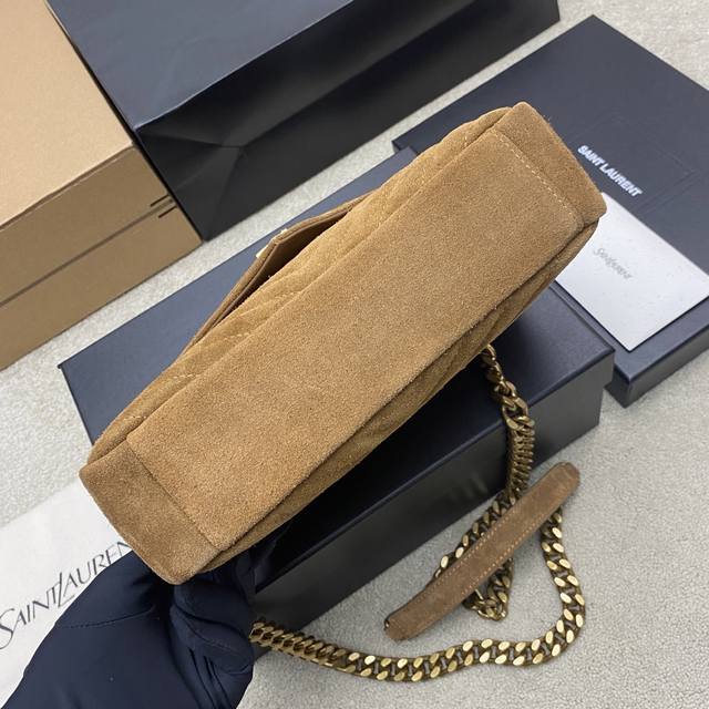 Original Leather Caramel Matte Antique Gold Yls Classic Brown Matte Leather Messenger Bag with Gold Hardware. This medium-sized handbag is practical and stylish! Made with imported European original deerskin leather, it feels incredibly soft and comes with a metal chain and a detachable leather shoulder strap. Model: 392737 Original Leather Size: 24X17X6.5Cm