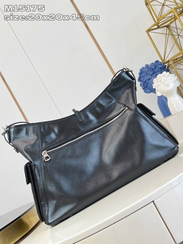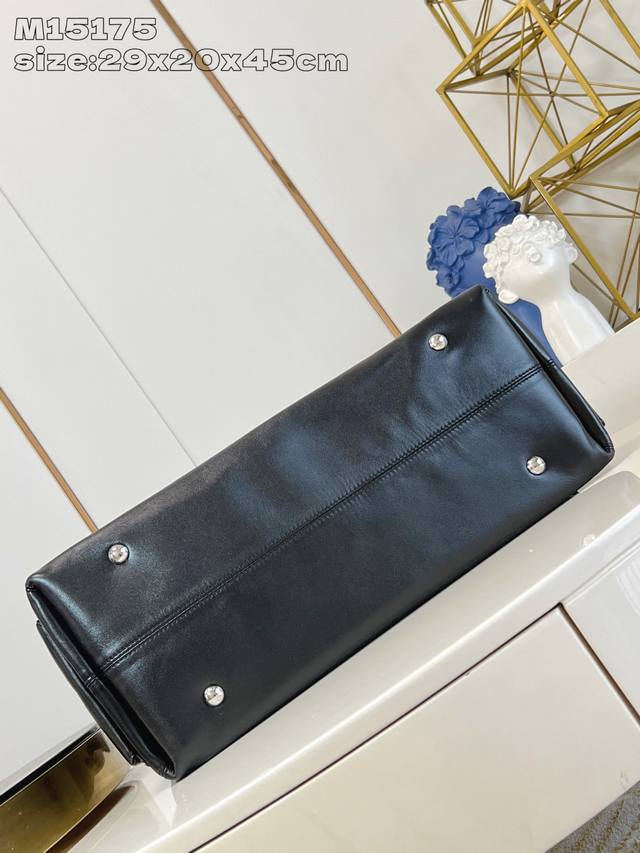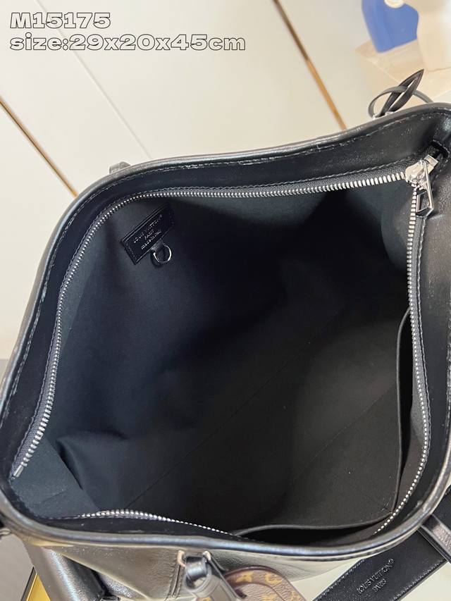 Exclusive photo M15175 This Carry All Travel Bag is crafted from soft cowhide leather , featuring Monogram canvas accents on the branding and lining, making it an elegant travel companion. Multiple pockets, including side compartments, highlight its functional design, while a removable and adjustable shoulder strap ensures comfortable carrying. Dimensions: 29 x 20 x 45 cm (H x W x L)