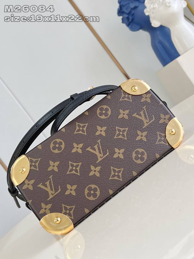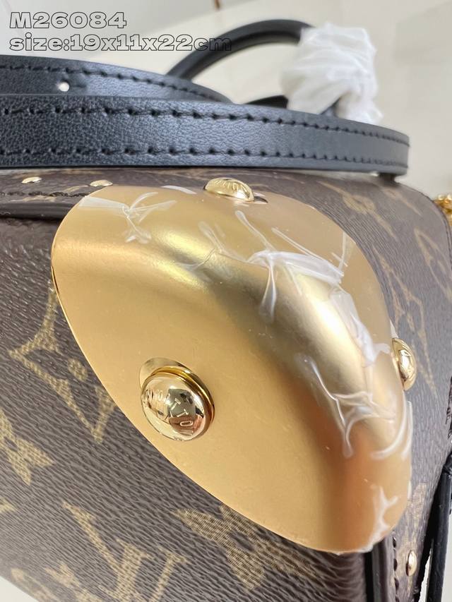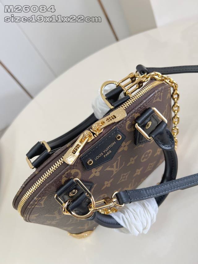 Original Leather Ddd Exclusive Real Shot M26084 Alma Bb Handbag: A refreshed version, becoming a new member of the Trunk series, paying homage to the brand's long-standing travel culture with classic logos. The handbag is crafted from Monogram canvas with deep leather trim, accented with striking metal corners and studs. This version features a detachable chain that can be used with the adjustable shoulder strap or alone. 19 x 11 x 22 cm (H x W x Length) DDD