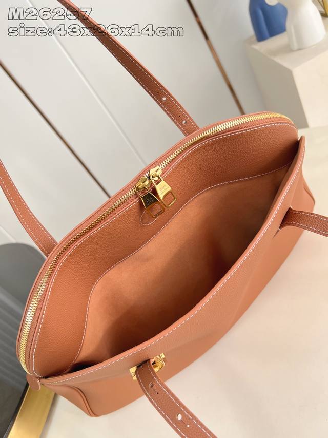 Original Leather Ddd Exclusive Real Shot M26257 Brown M26688 This new Duffle Tote from the Low Key series is inspired by the Alma Horizontal bag from the early 2000s. It's crafted from seasonal Cognac grained calfskin, featuring a secure zipper and vintage gold-tone hardware including a signature padlock. The bag is spacious enough to hold a laptop and other everyday essentials, and includes a detachable Monogram pocket. 43.5 X 26.5 X 14.5 cm (Length X Height X Width) DDD