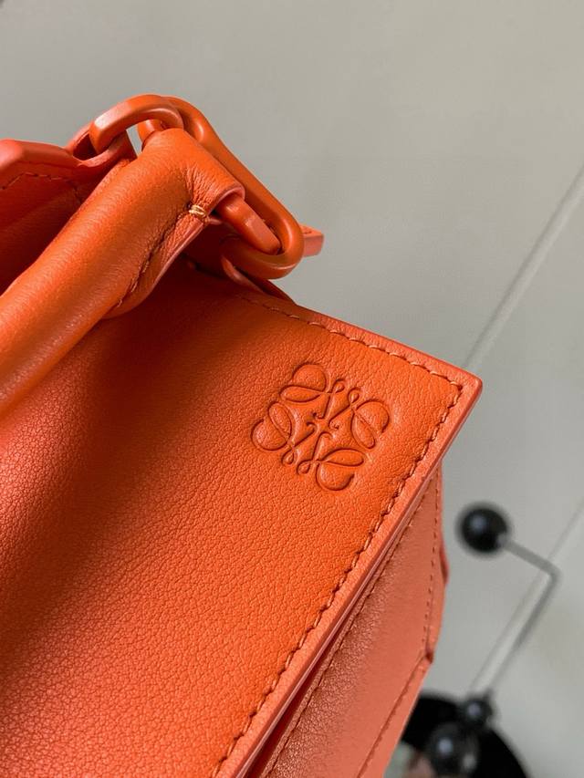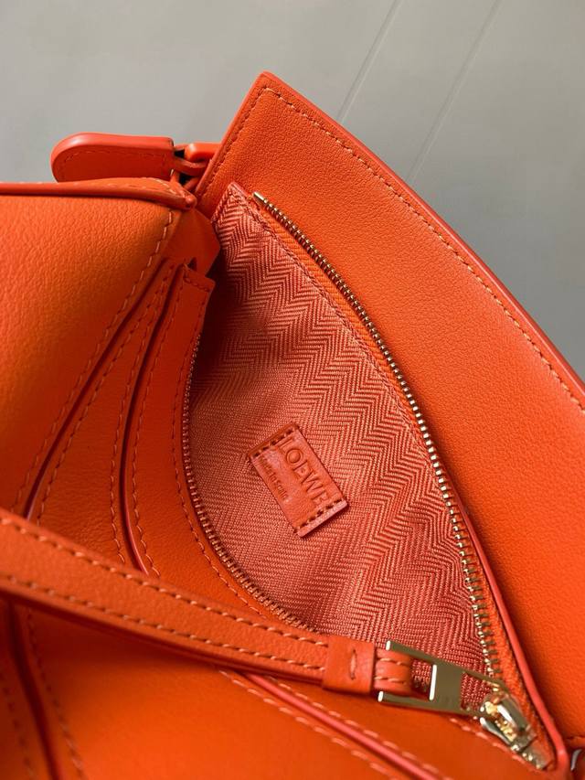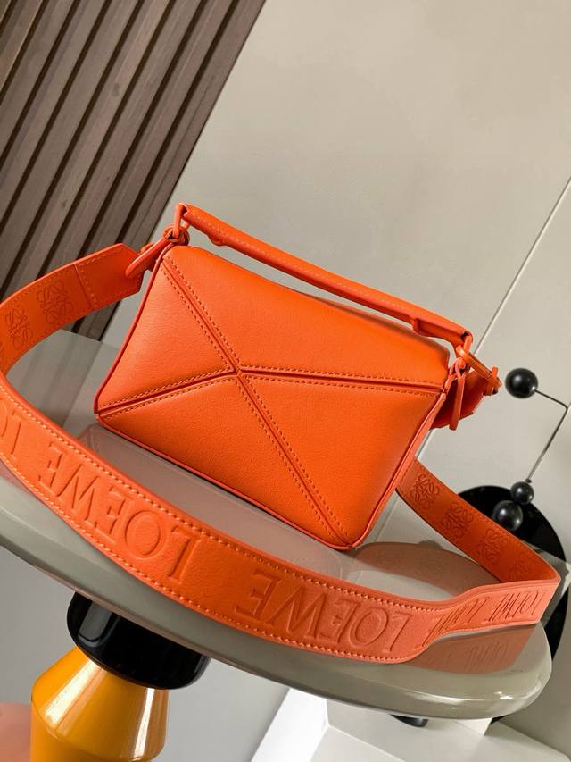 geometric bag mini 18cm wide shoulder strap embossed puzzle handbag Original imported calfskin plain weave Luojia's popular geometric bag puzzle handbag is the first handbag launched by creative director Jonathan Anderson for L0Ewe. The rectangular shape and precise cutting technology create the unique geometric lines of the puzzle. This mini size version is made of soft grained cowhide leather with a different thick shoulder strap. The shoulder strap is printed with the L0Ewe logo. The metal buckle position is in the same color as the bag, making the bag more fashionable. The overall weight of the bag is still very light. It is very durable and lightweight, can hold a lot of things, suitable for work and travel.