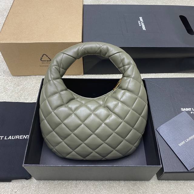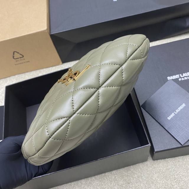 Original Leather DDD Grey-Green Lambskin Gold DDD Icare Baby Nappa Lambskin Handbag The highly anticipated croissant-shaped bag has arrived, adorned with the iconic metal logo, perfectly combining retro and modern styles, making it one of the most anticipated It Bags of the season. Whether for everyday outings or evening parties, this bag is effortlessly versatile! DDD Model: 851689 Original Leather DDD Dimensions: 17cm