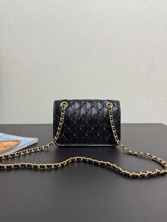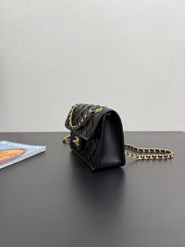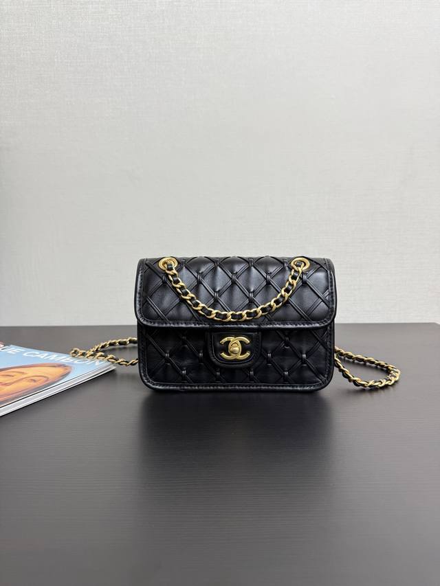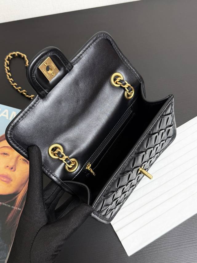 Original leather, in stock, 25S Spring/Summer collection, silver woven mini bag, Ohanel 25S Spring/Summer collection, DDD, black DDD, black woven calfskin, black metal DDD, 13*19*5.5Cm DDD